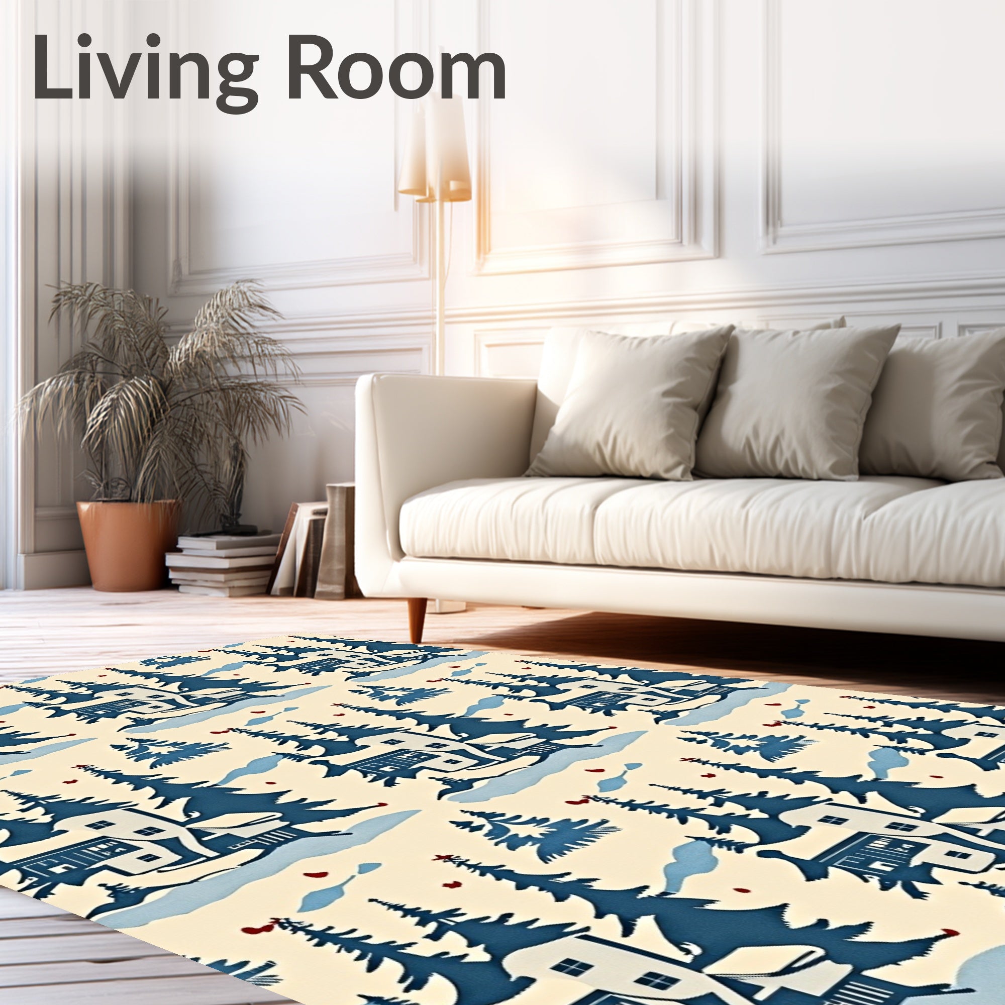 Ultra Soft Area Rug, Non Slip, Stain Resistant, Washable Area Rugs for Living Room, Bedroom, Winter Wonderland Scene Decorative with Snowy Landscape Design(Beige) Overview: