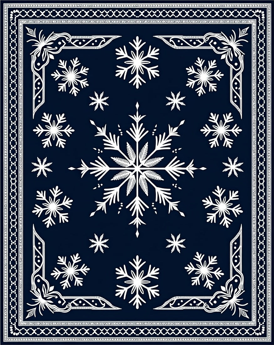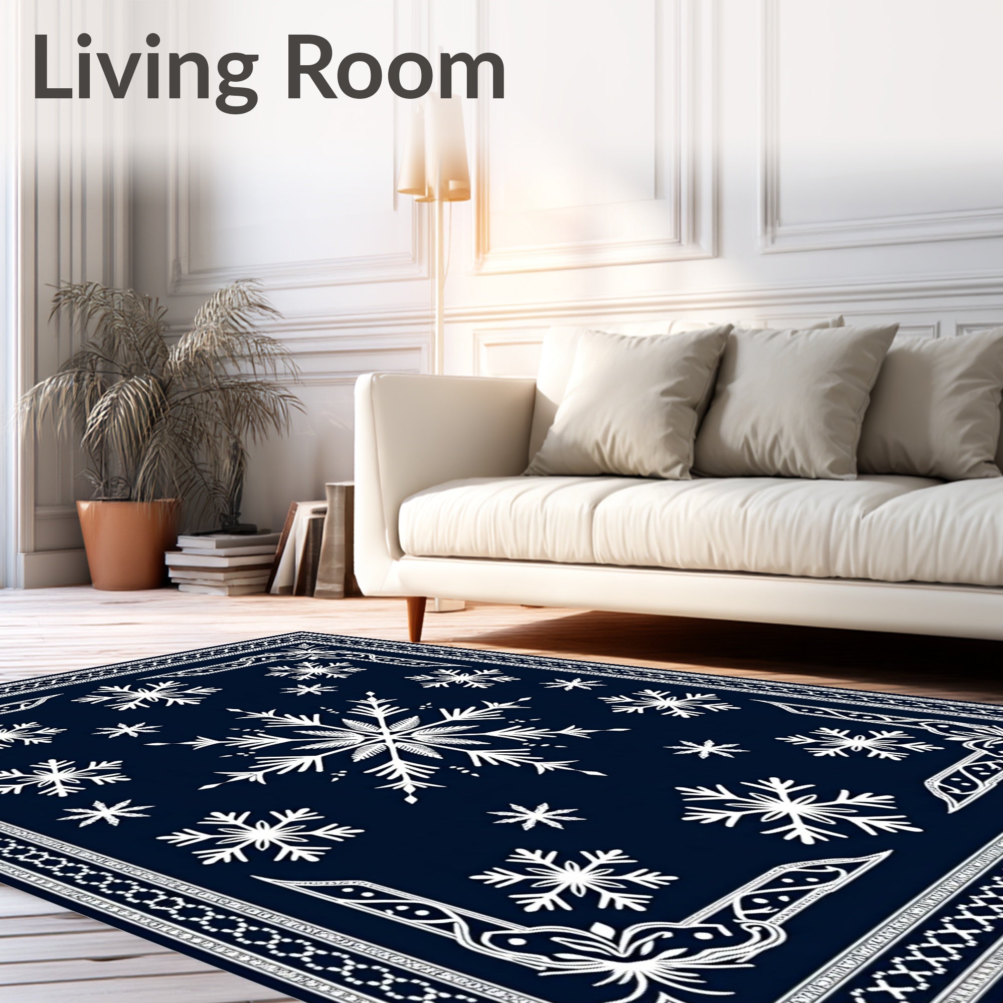 Ultra Soft Area Rug, Non Slip, Stain Resistant, Washable Area Rugs for Living Room, Bedroom, Winter Wonderland Snowflake Festival Area Machine(Navy) Overview: