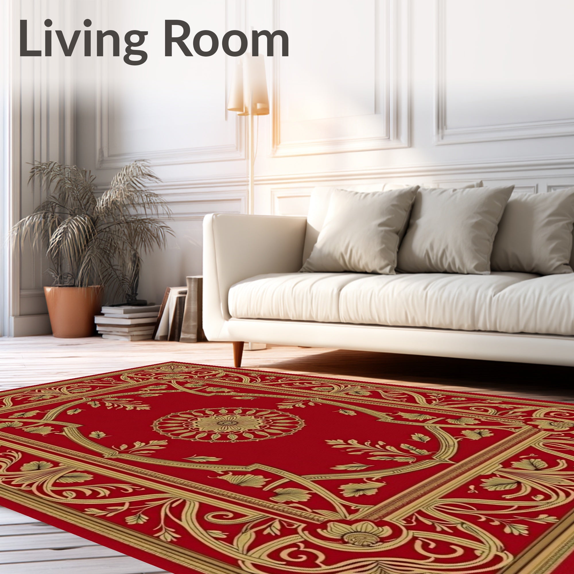 Ultra Soft Area Rug, Non Slip, Stain Resistant, Washable Area Rugs for Living Room, Bedroom, Winterberry Floral Scrollwork Accent(Red) Overview: