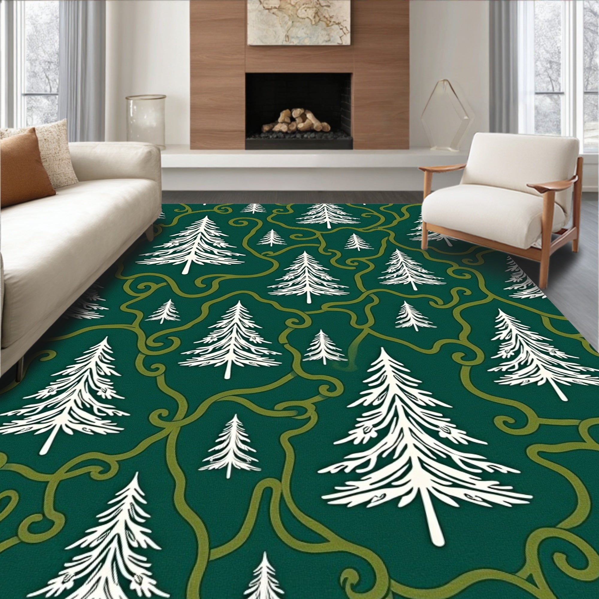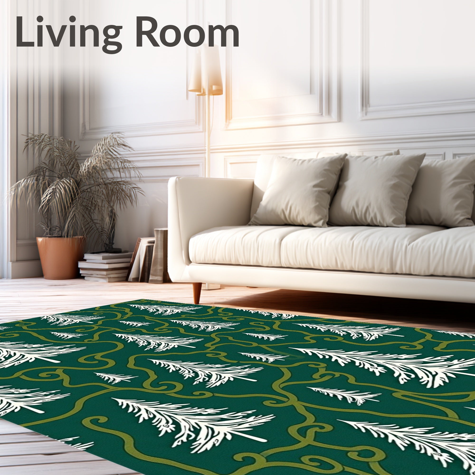 Ultra Soft Area Rug, Non Slip, Stain Resistant, Washable Area Rugs for Living Room, Bedroom, Wispy Conifer Motif Floor Absorbent Accent(Green) Overview: