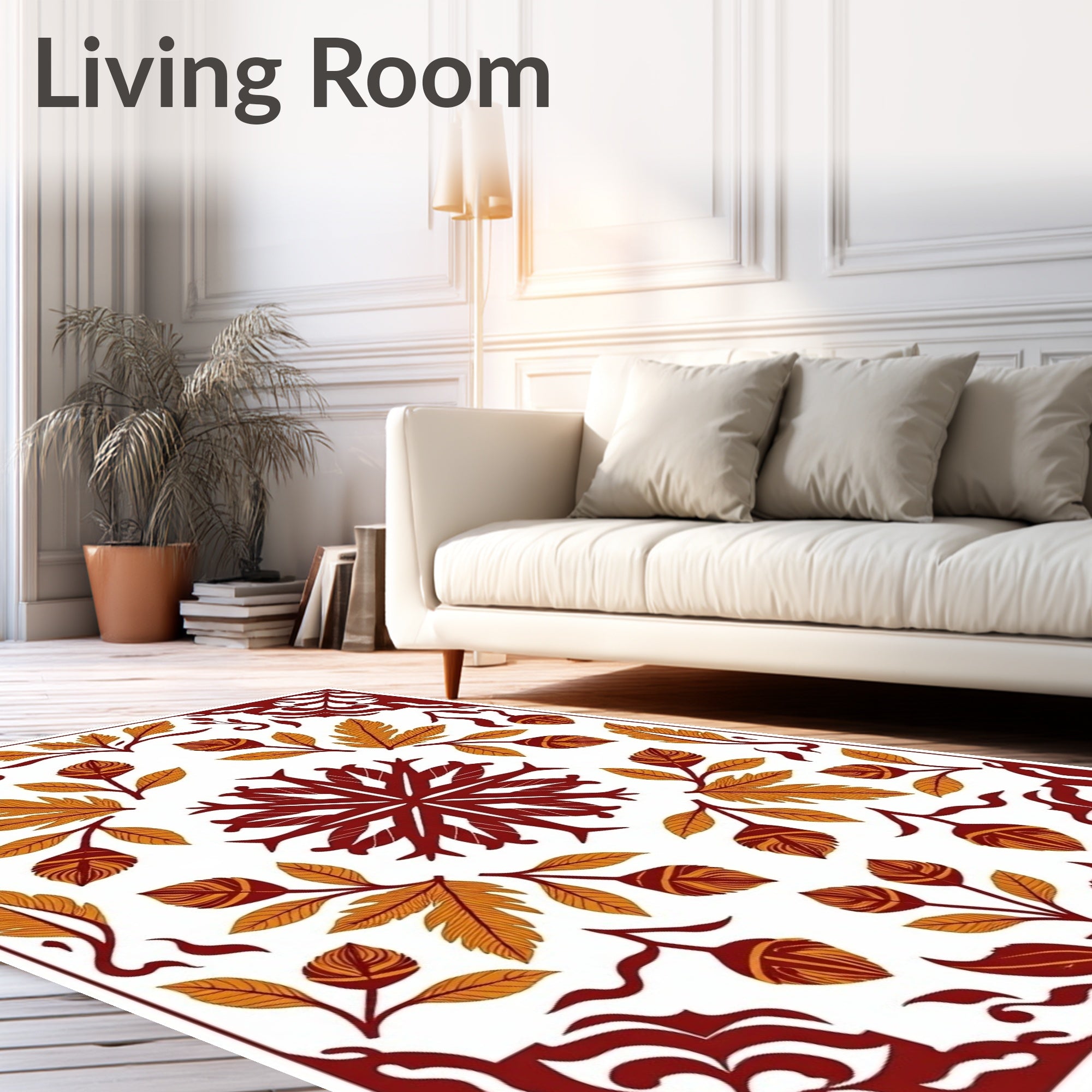 Flatwoven High Traffic Area Rug, Woodland Elegance Foliage Artisan, Non Slip, Stain Resistant, Washable Area Rugs for Living Room, Bedroom (White) Overview: