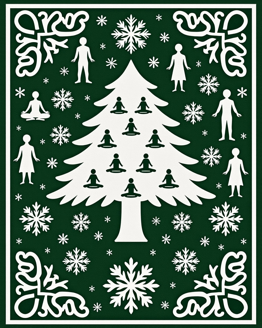 Yoga Pose Pine Tree With Frosted Snowflake Motif Design(Green)