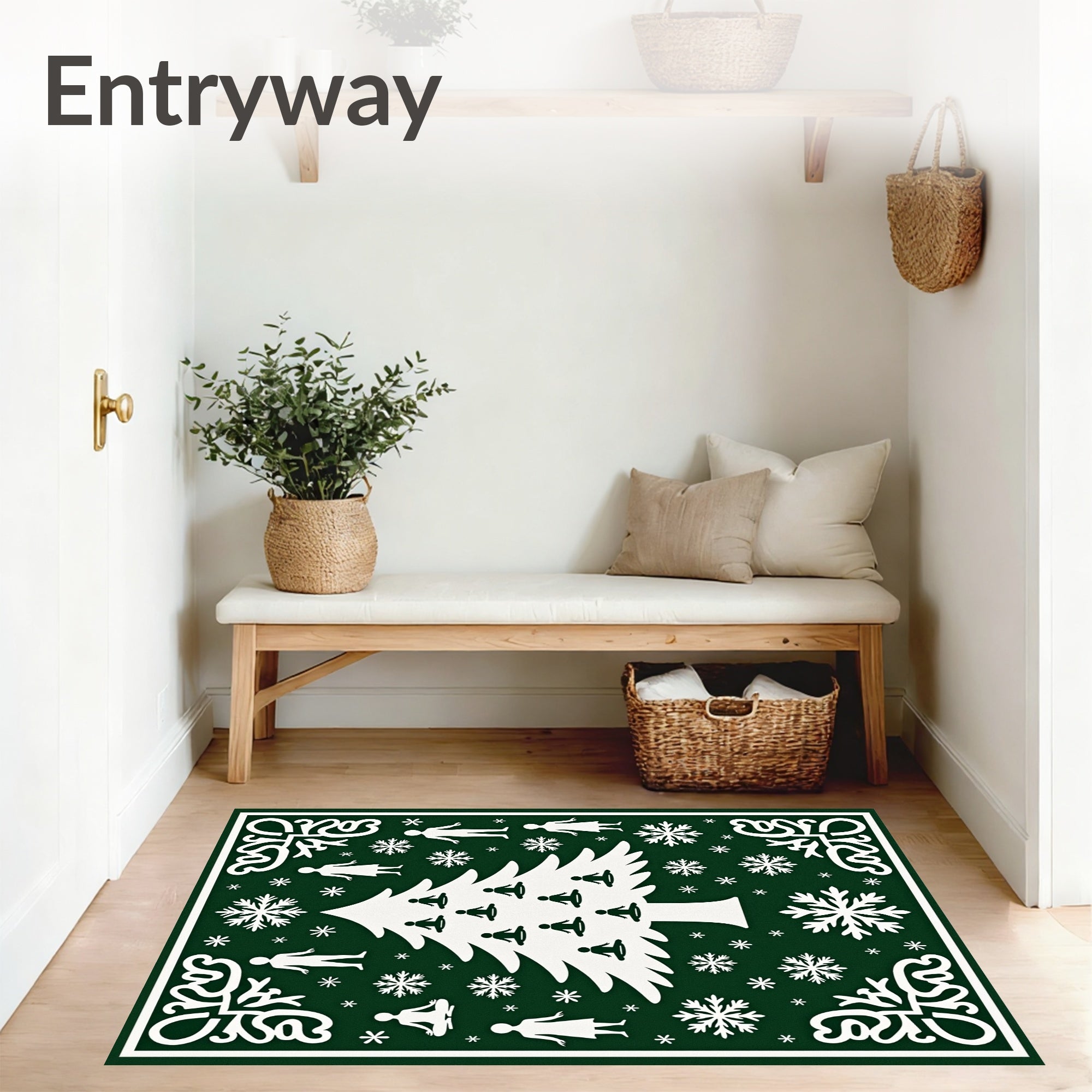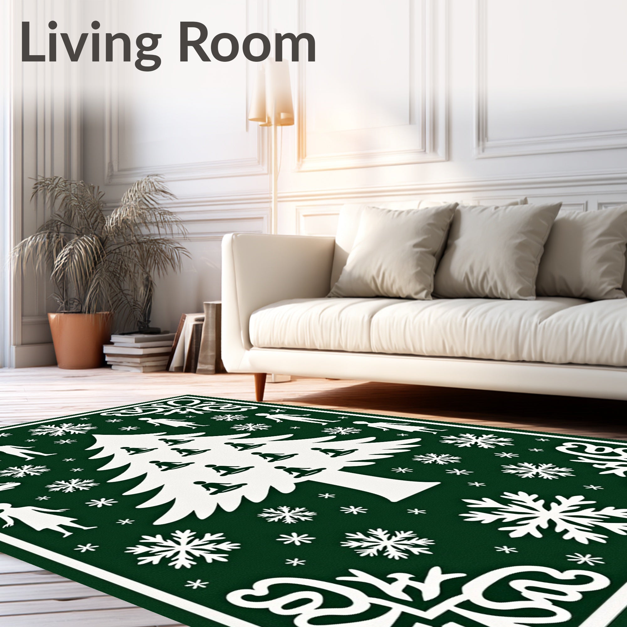 Ultra Soft Area Rug, Non Slip, Stain Resistant, Washable Area Rugs for Living Room, Bedroom, Yoga Pose Pine Tree With Frosted Snowflake Motif Design(Green) Overview:
