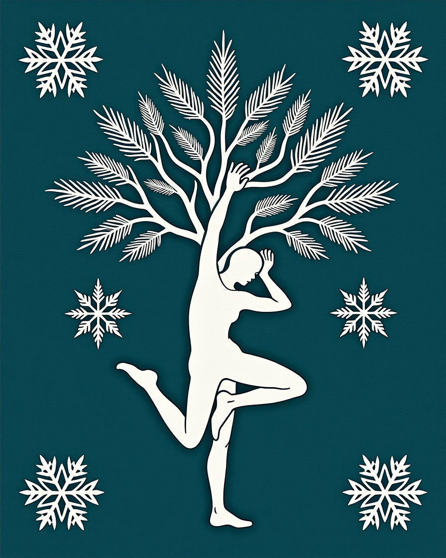 Yoga Pose Tree and Falling Snowflakes Artistic Design(Blue)