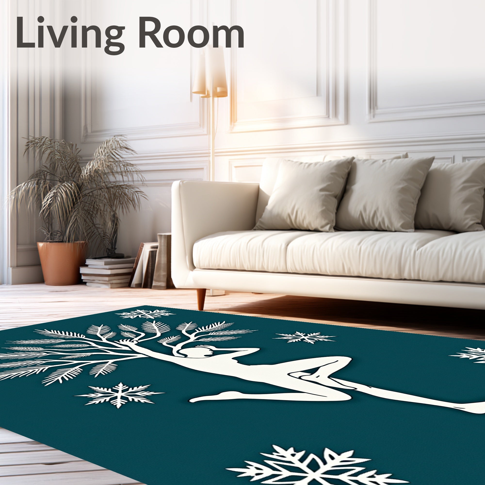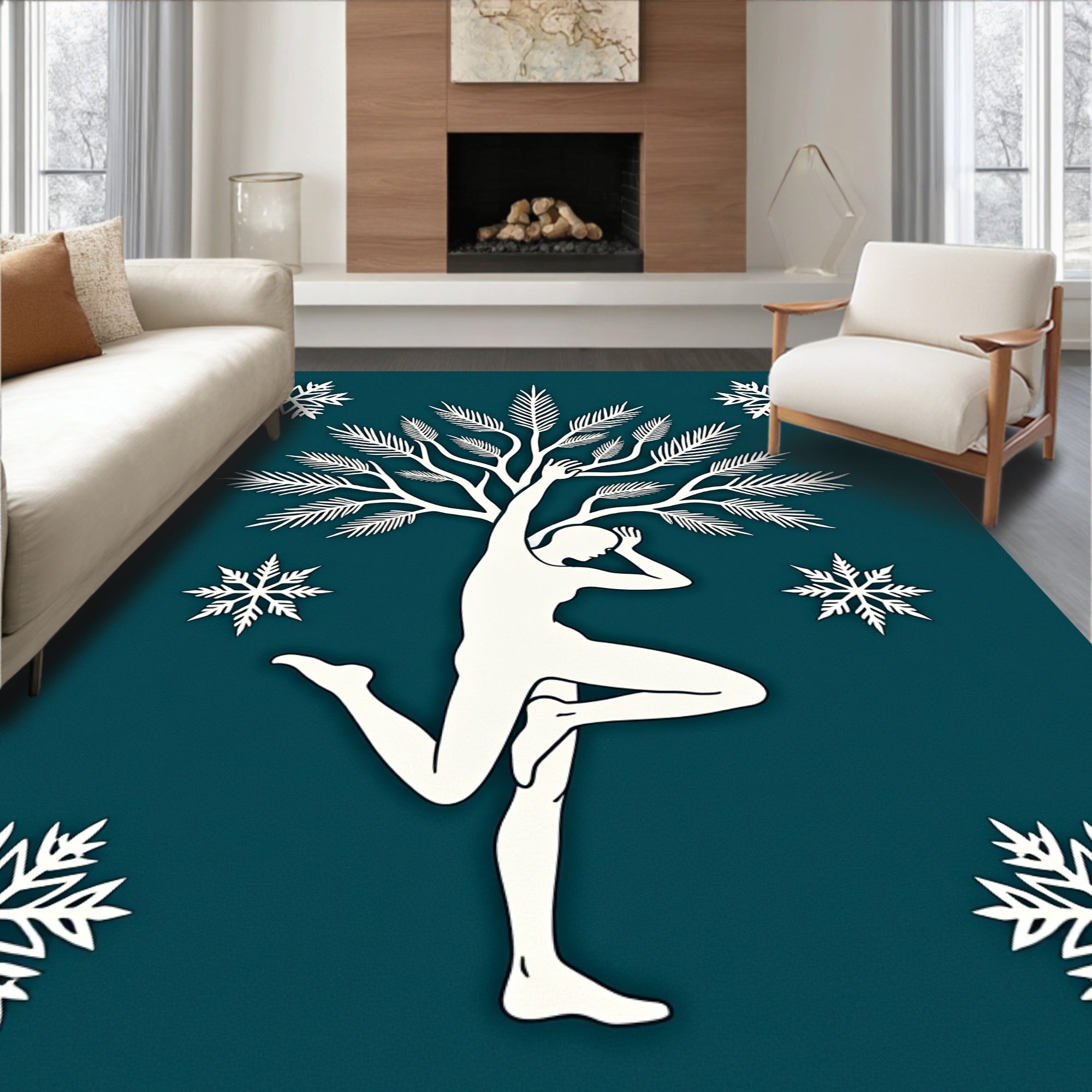 Flatwoven High Traffic Area Rug, Yoga Pose Tree and Falling Snowflakes Artistic Design, Non Slip, Stain Resistant, Washable Area Rugs for Living Room, Bedroom (Blue) Overview: