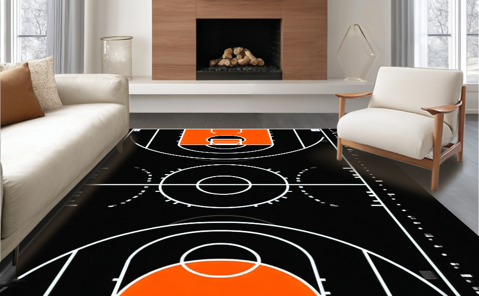 Ultra Soft Area Rug, Non Slip, Stain Resistant, Washable Area Rugs for Living Room, Bedroom, Youthful Graphic Hoop Pattern(Black) Overview: