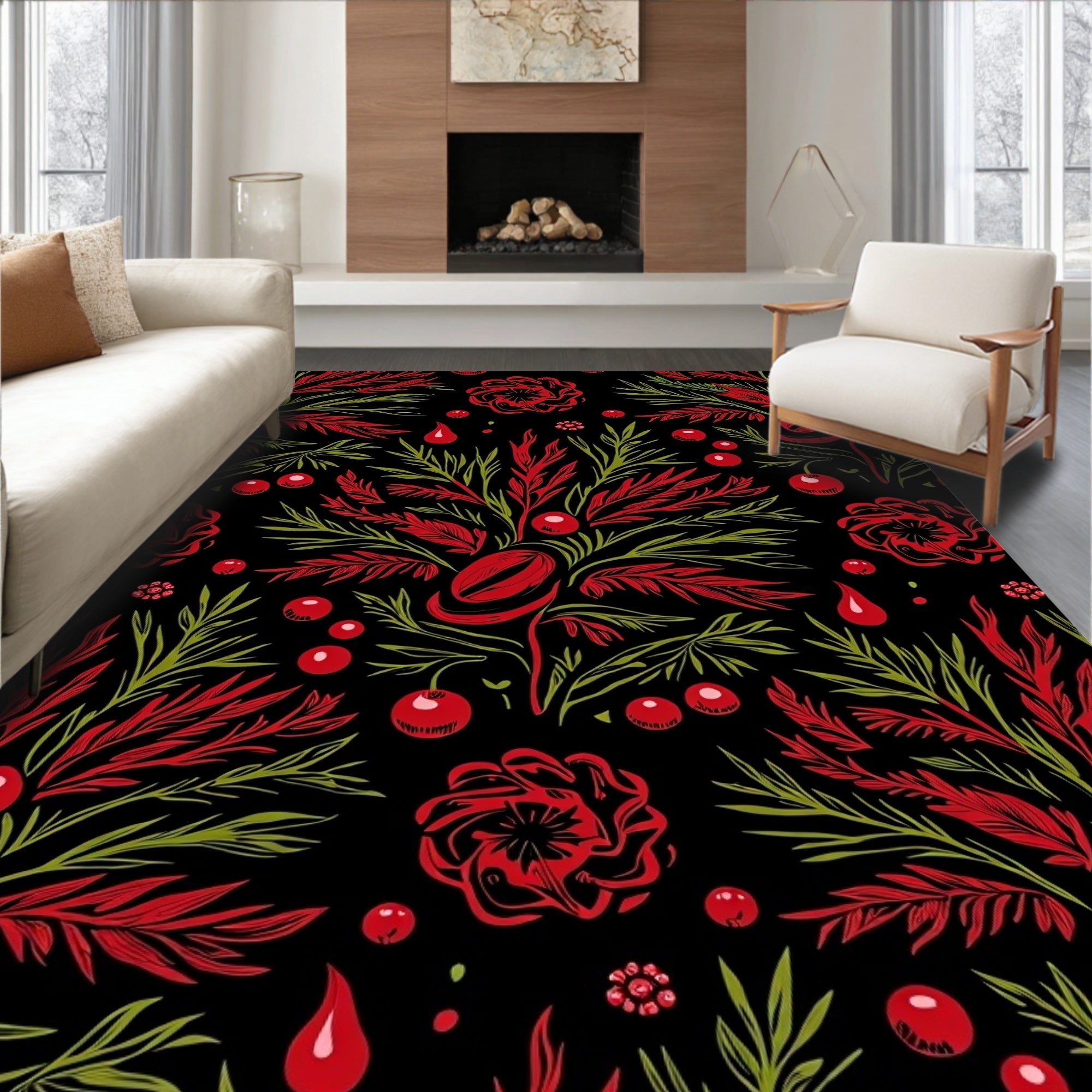 Ultra Soft Area Rug, Non Slip, Stain Resistant, Washable Area Rugs for Living Room, Bedroom, Yuletide Botanical Luxurious Artisan Treasure(Red) Overview:
