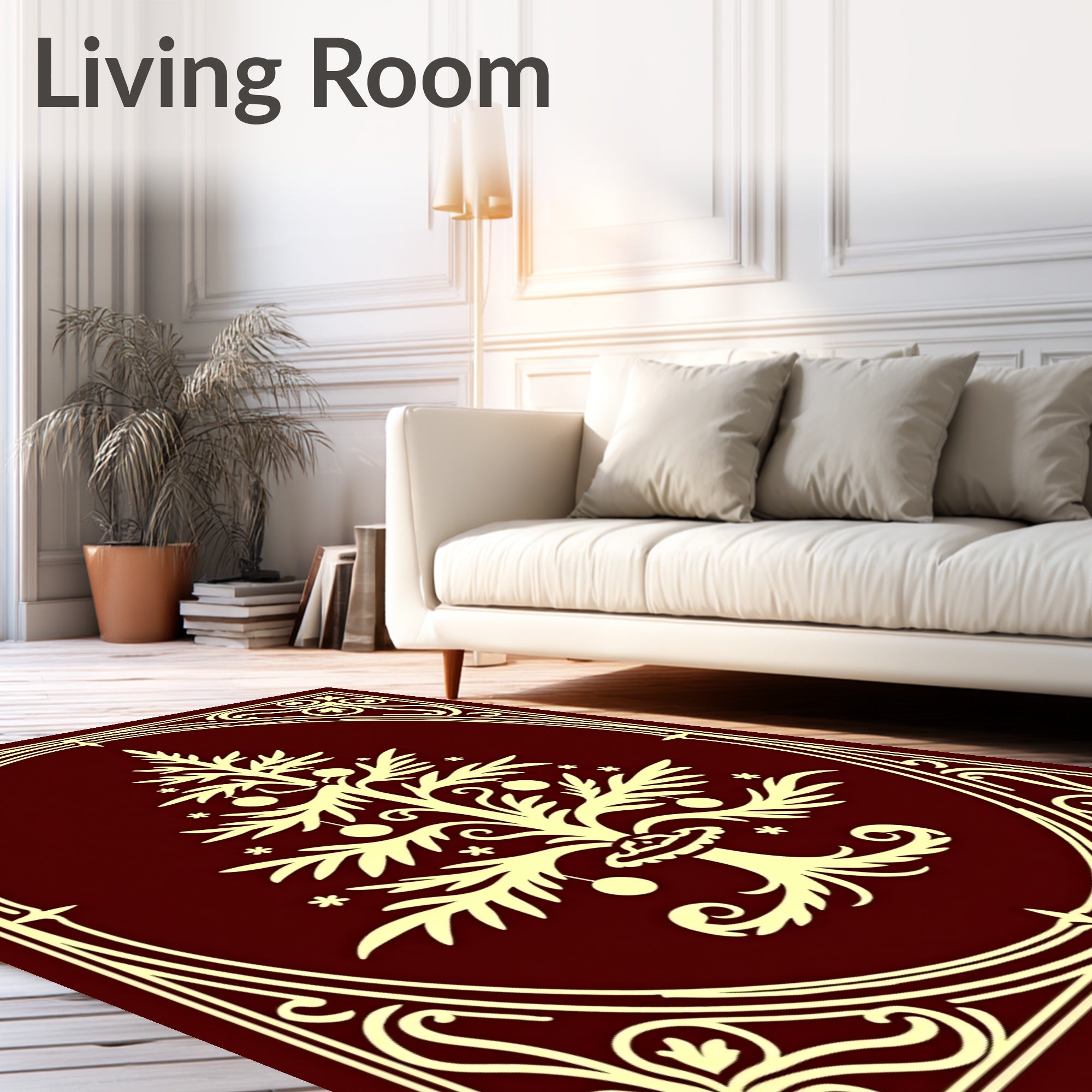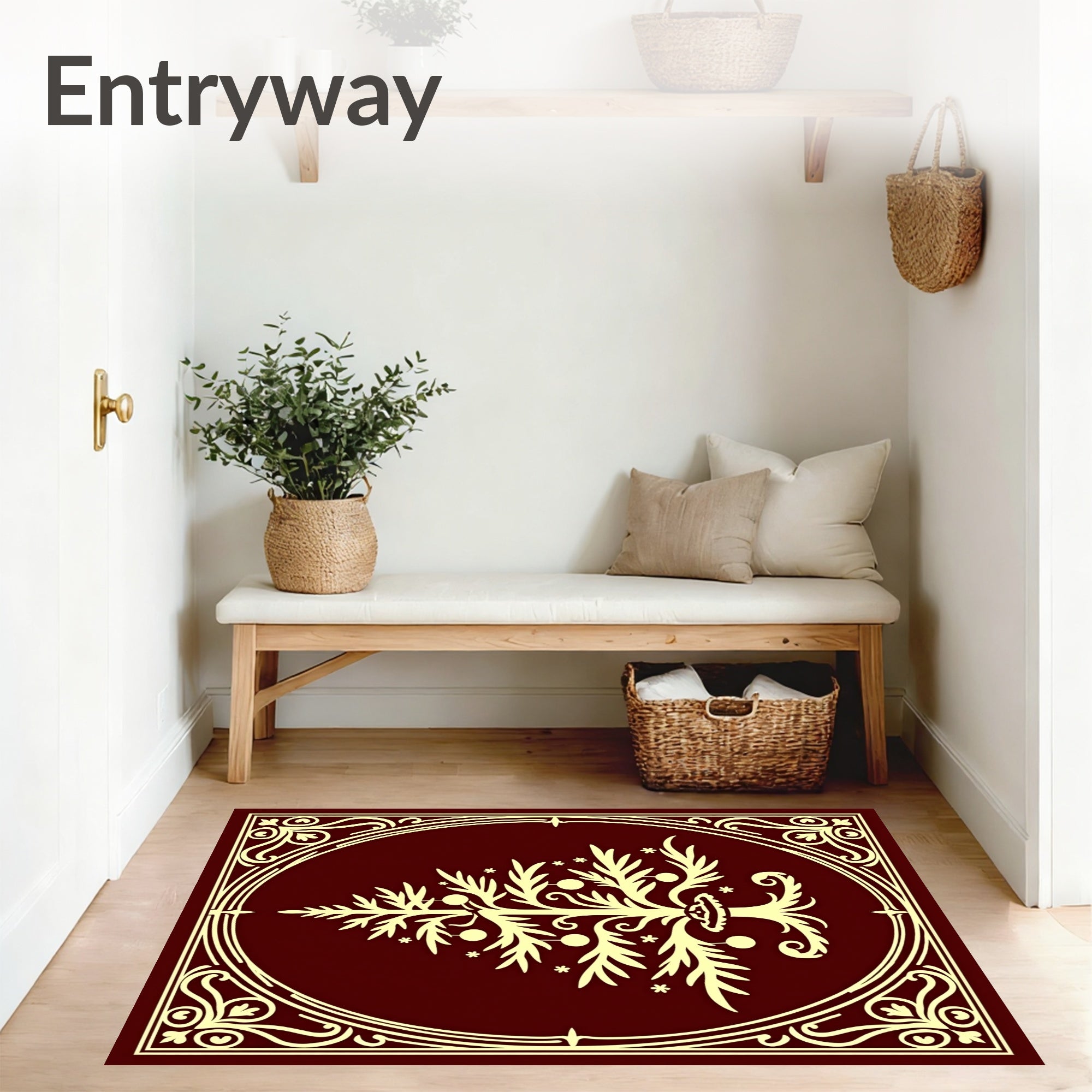 Ultra Soft Area Rug, Non Slip, Stain Resistant, Washable Area Rugs for Living Room, Bedroom, Yuletide Celebration Front Step Barrier Displaying Fir Motif(Red) Overview:
