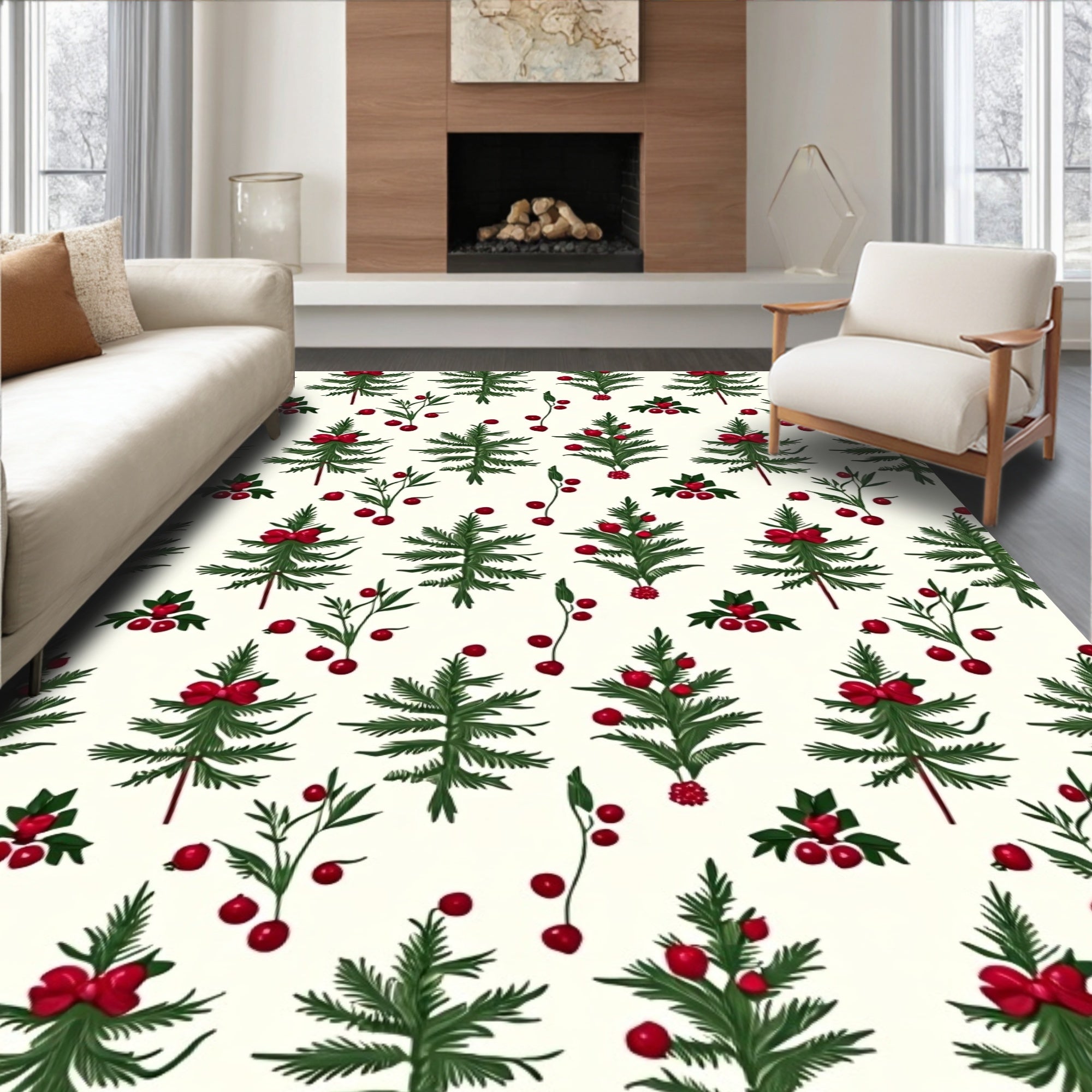 Ultra Soft Area Rug, Non Slip, Stain Resistant, Washable Area Rugs for Living Room, Bedroom, Yuletide Celebration Pathway Adorned Fir Needles(Green) Overview: