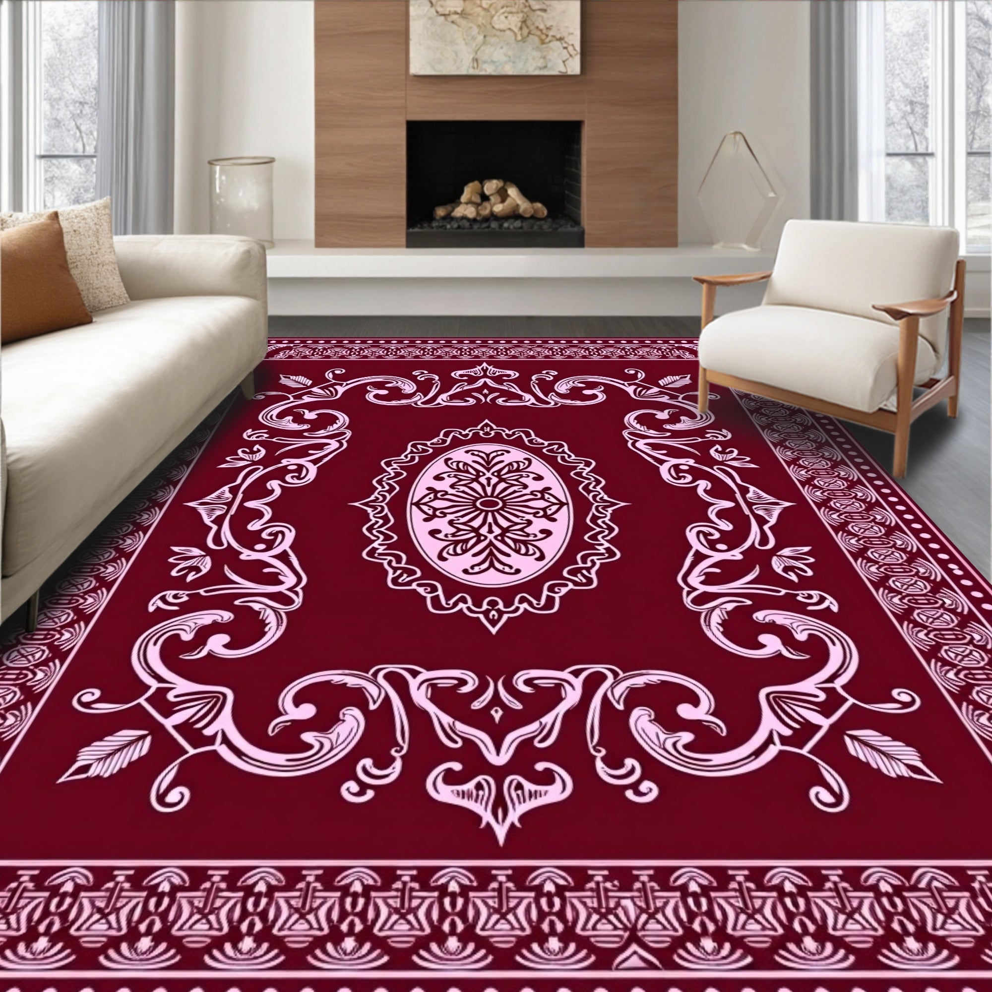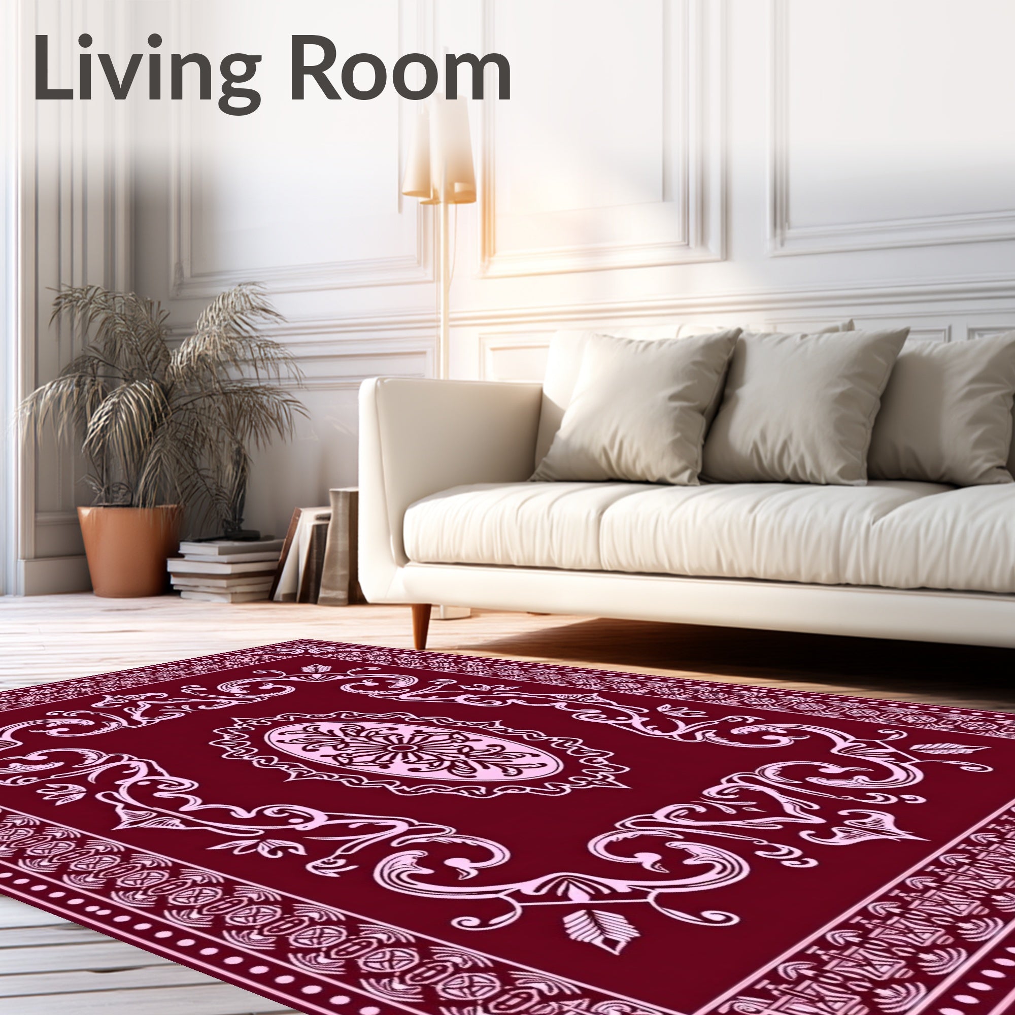 Ultra Soft Area Rug, Non Slip, Stain Resistant, Washable Area Rugs for Living Room, Bedroom, Yuletide Chime Symphony Semi Circle Entrance Featuring Elegant(Red) Overview: