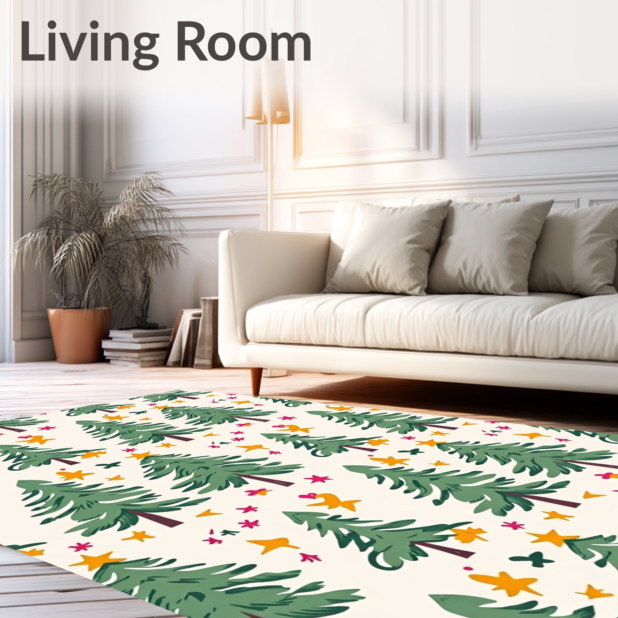 Ultra Soft Area Rug, Non Slip, Stain Resistant, Washable Area Rugs for Living Room, Bedroom, Yuletide Conifer Forest Design with Twinkling(Green) Overview: