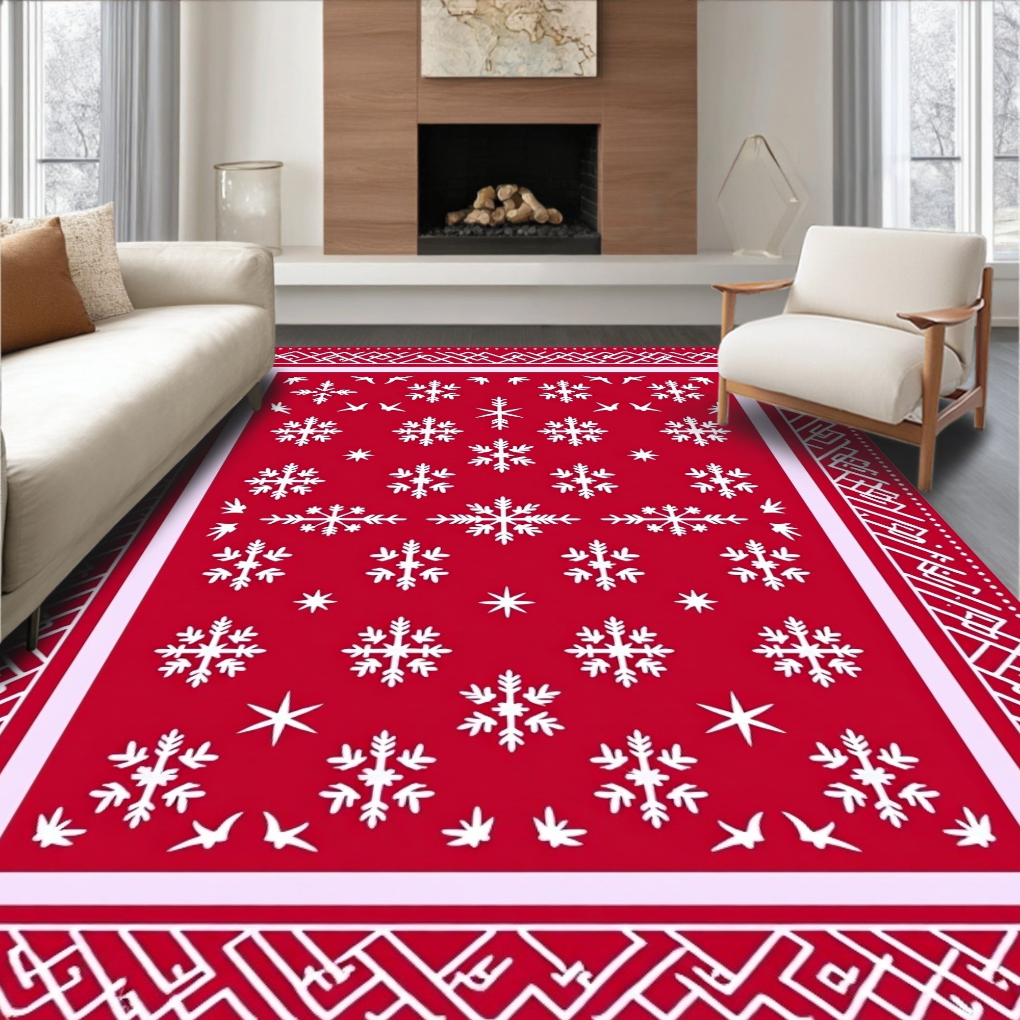Ultra Soft Area Rug, Non Slip, Stain Resistant, Washable Area Rugs for Living Room, Bedroom, Yuletide Elegant Decorative Accent(Red) Overview: