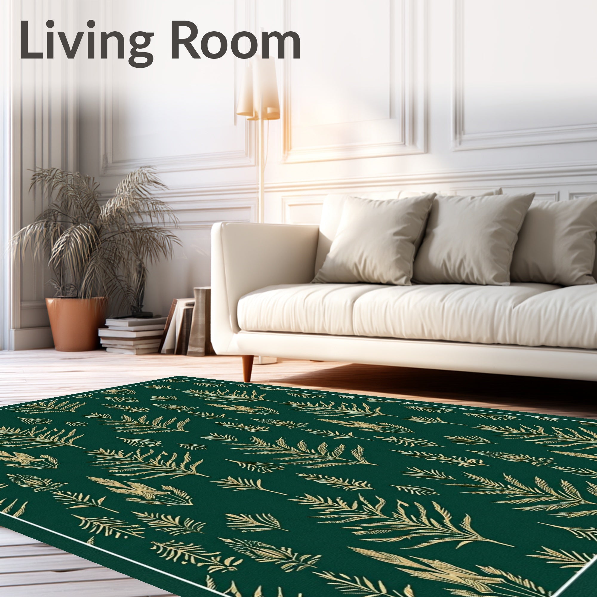 Ultra Soft Area Rug, Non Slip, Stain Resistant, Washable Area Rugs for Living Room, Bedroom, Yuletide Evergreen Pine Branch Decorative(Green) Overview: