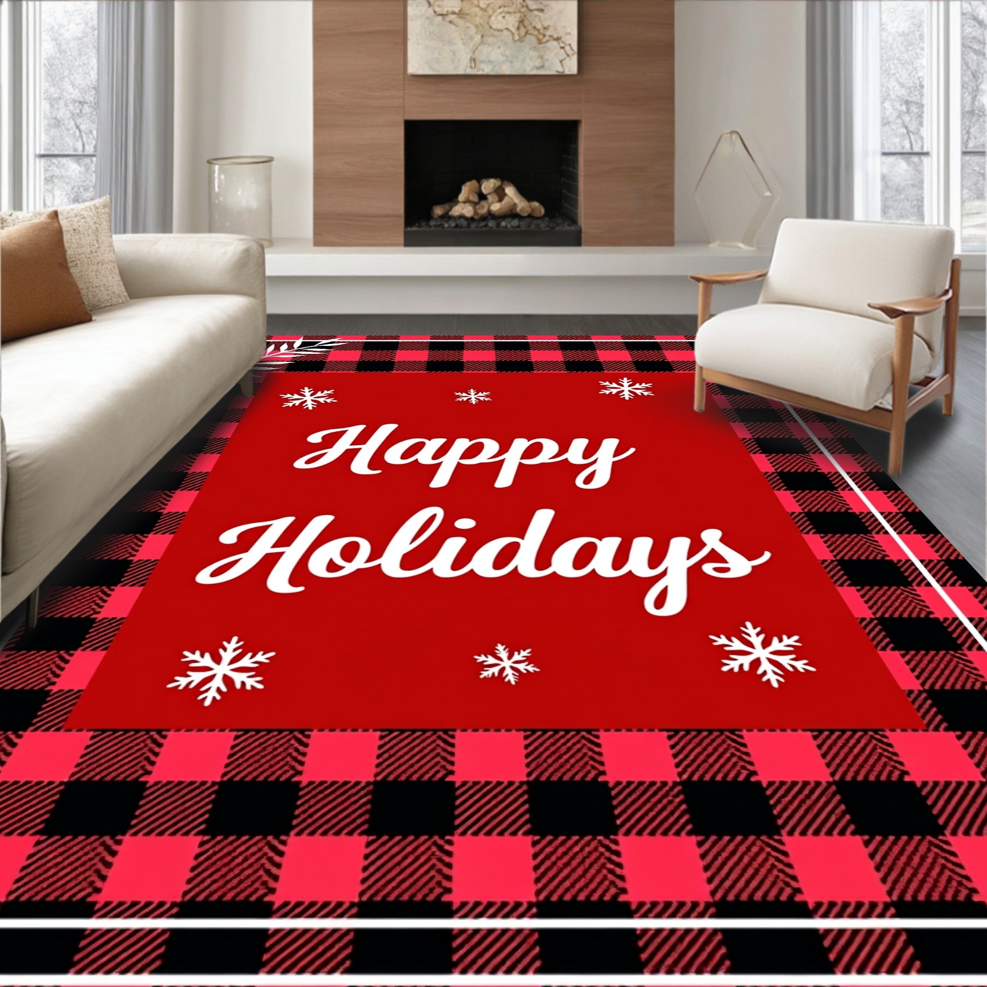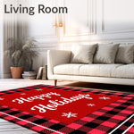 Ultra Soft Area Rug, Non Slip, Stain Resistant, Washable Area Rugs for Living Room, Bedroom, Yuletide Front Porch Decorative Checkered Entrance(Red) Overview: