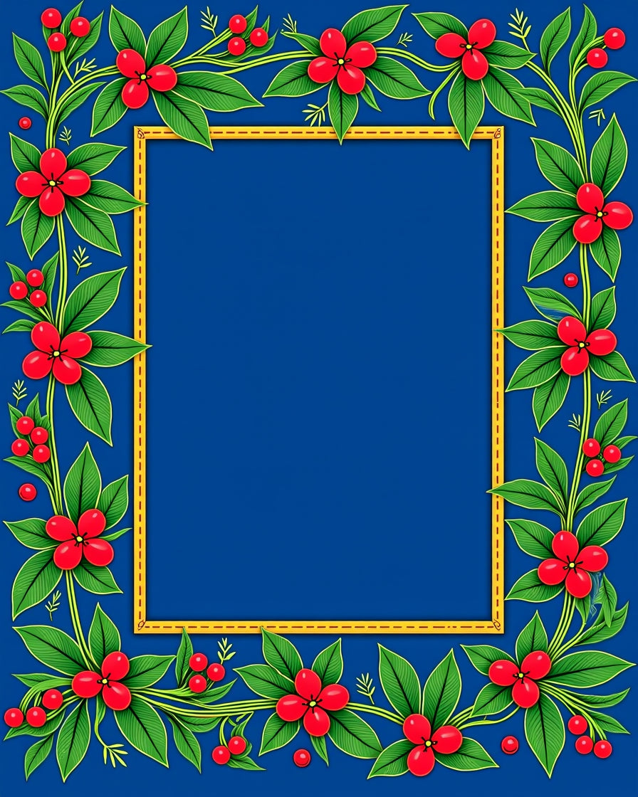 Yuletide Holly Berry Vine Border with Botanical Leaf Details(Blue)