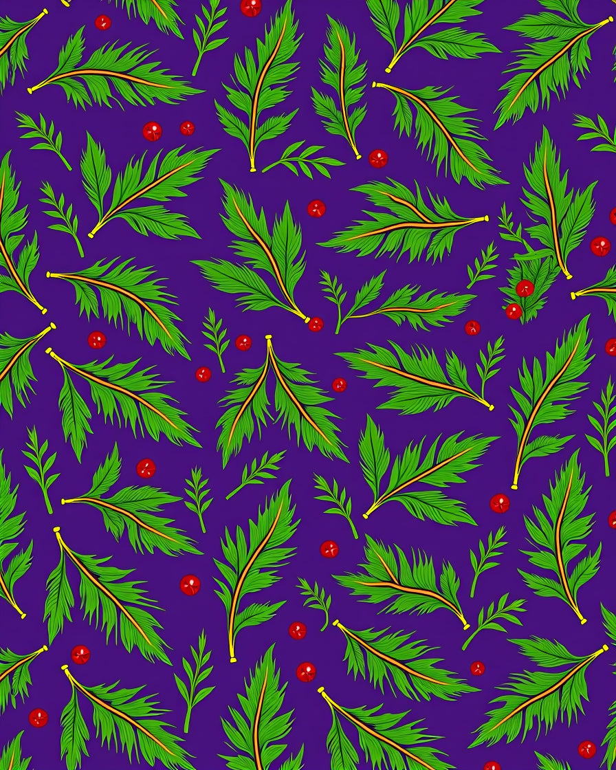 Yuletide Holly Leaf Vine Motif Accent(Purple)
