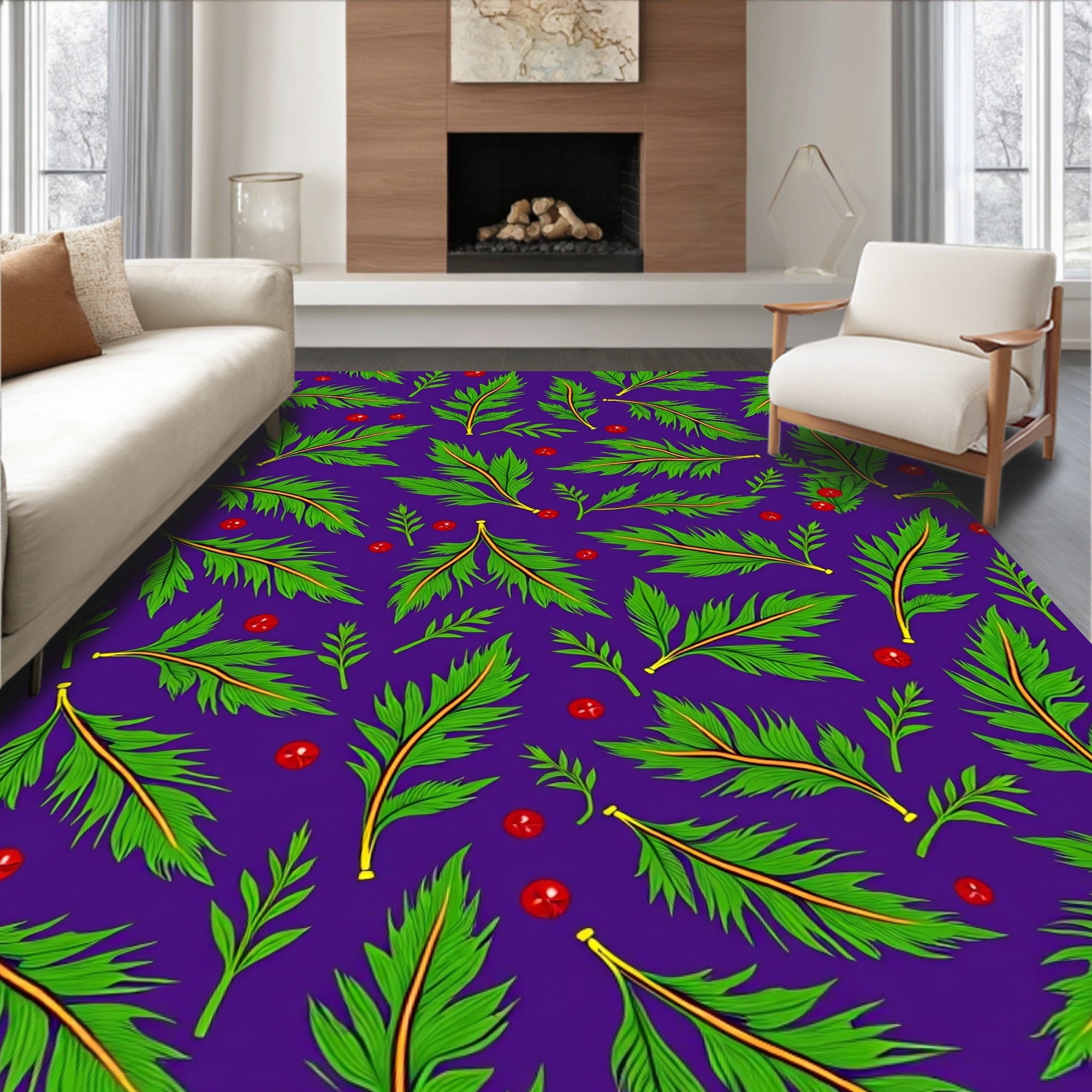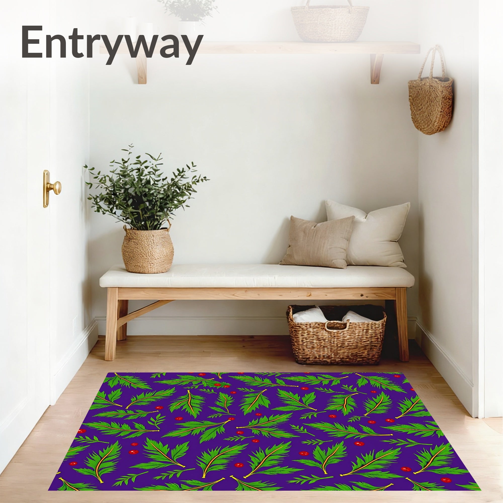 Flatwoven High Traffic Area Rug, Yuletide Holly Leaf Vine Motif Accent, Non Slip, Stain Resistant, Washable Area Rugs for Living Room, Bedroom (Purple) Overview: