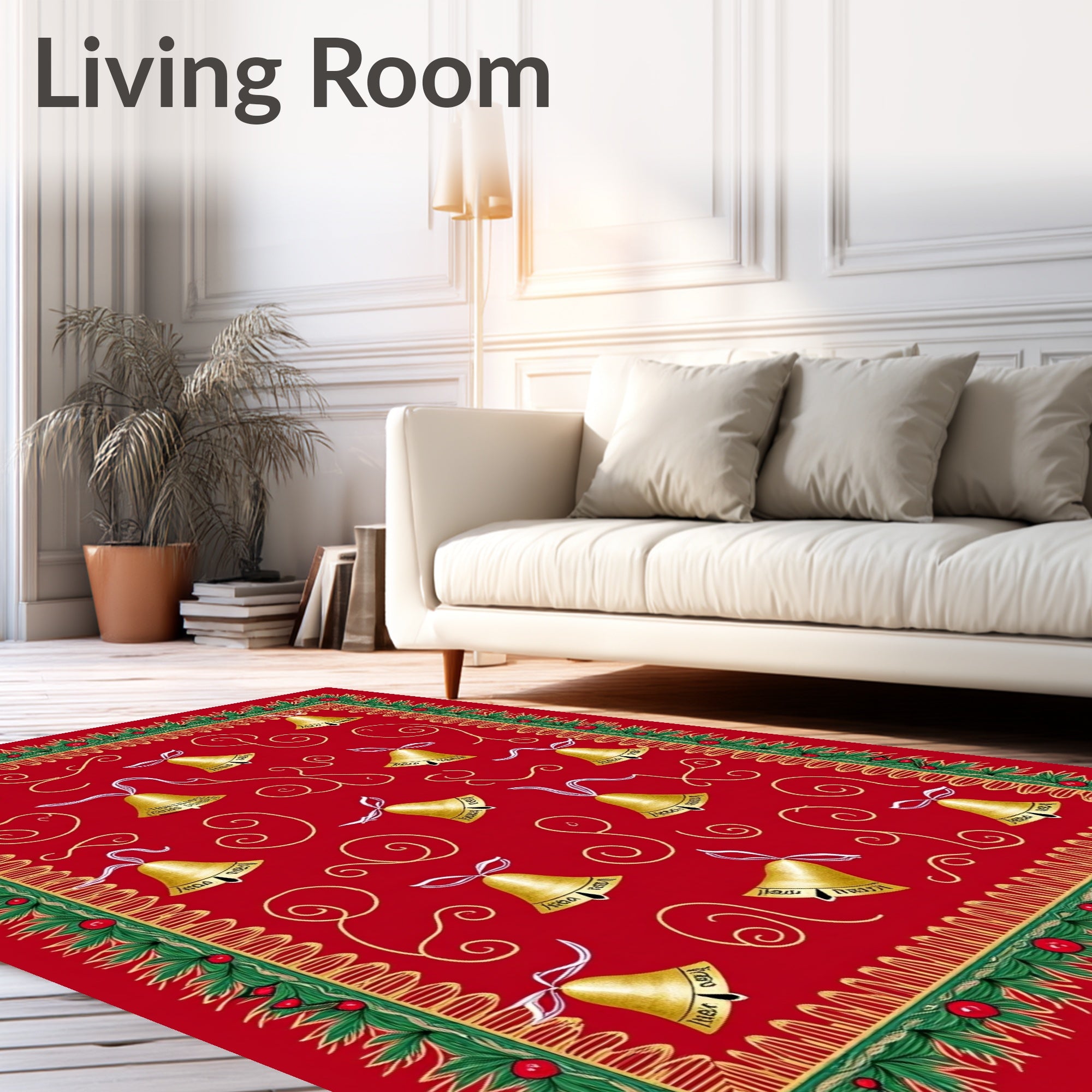 Ultra Soft Area Rug, Non Slip, Stain Resistant, Washable Area Rugs for Living Room, Bedroom, Yuletide Melody Entryway Greeting Semicircular Decoration(Red) Overview: