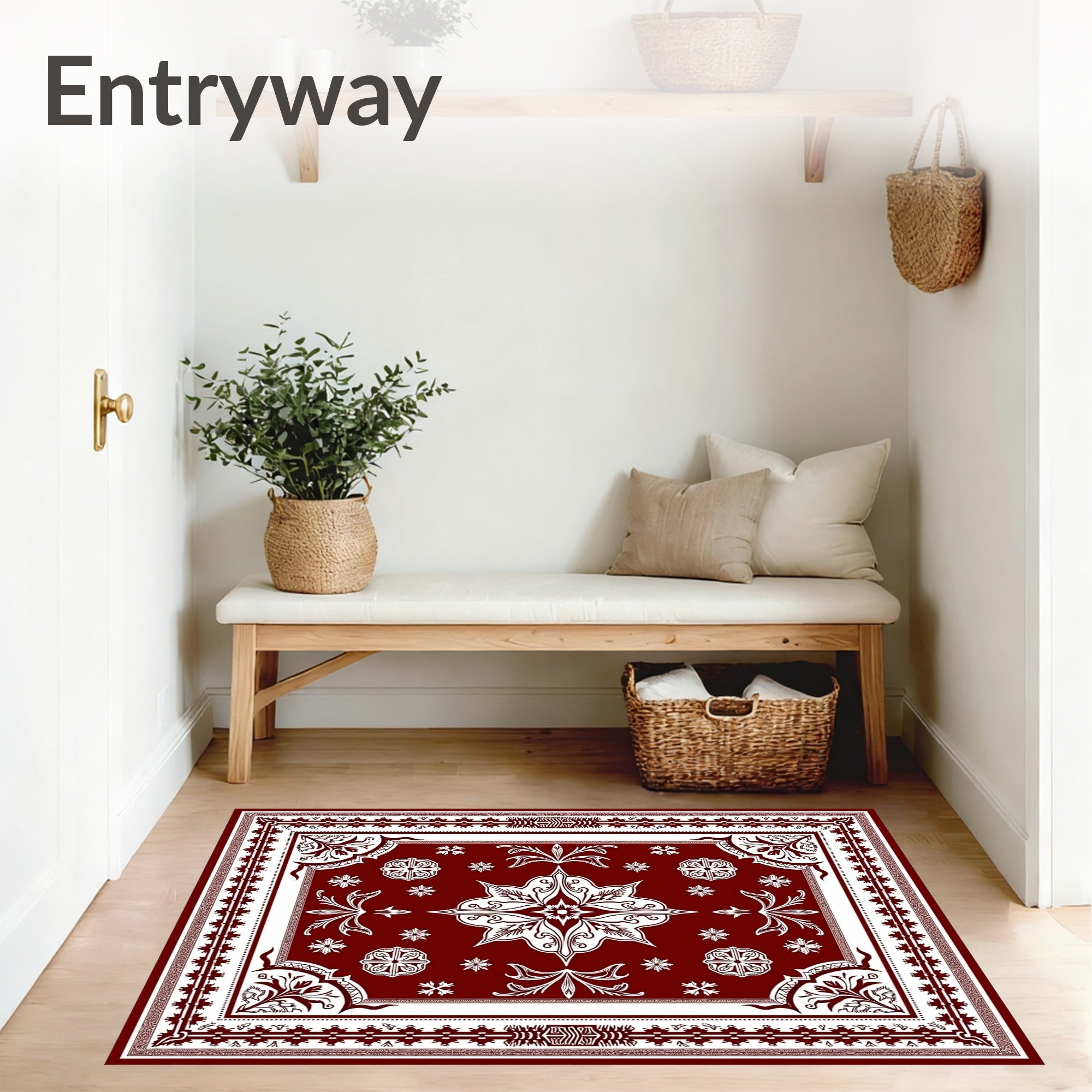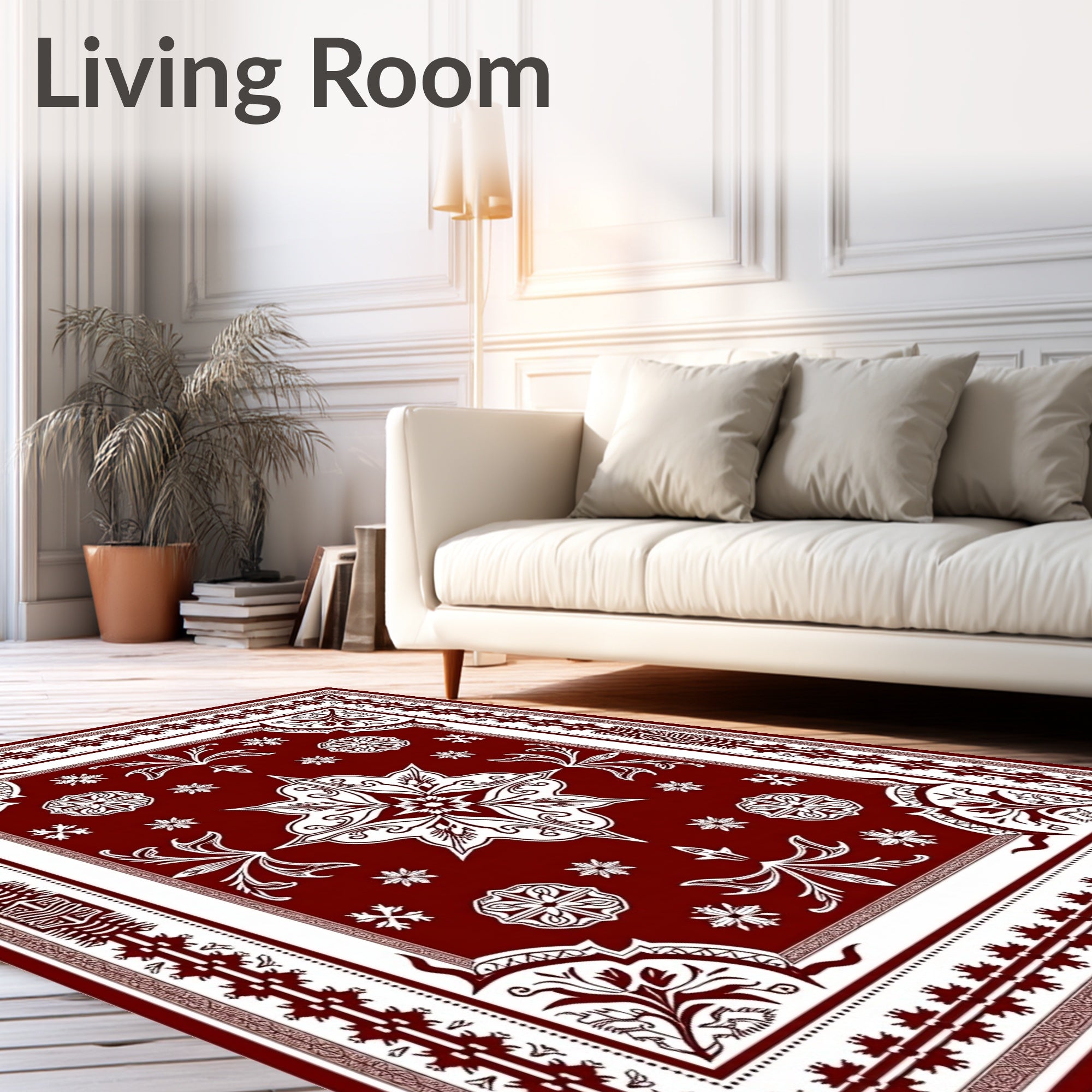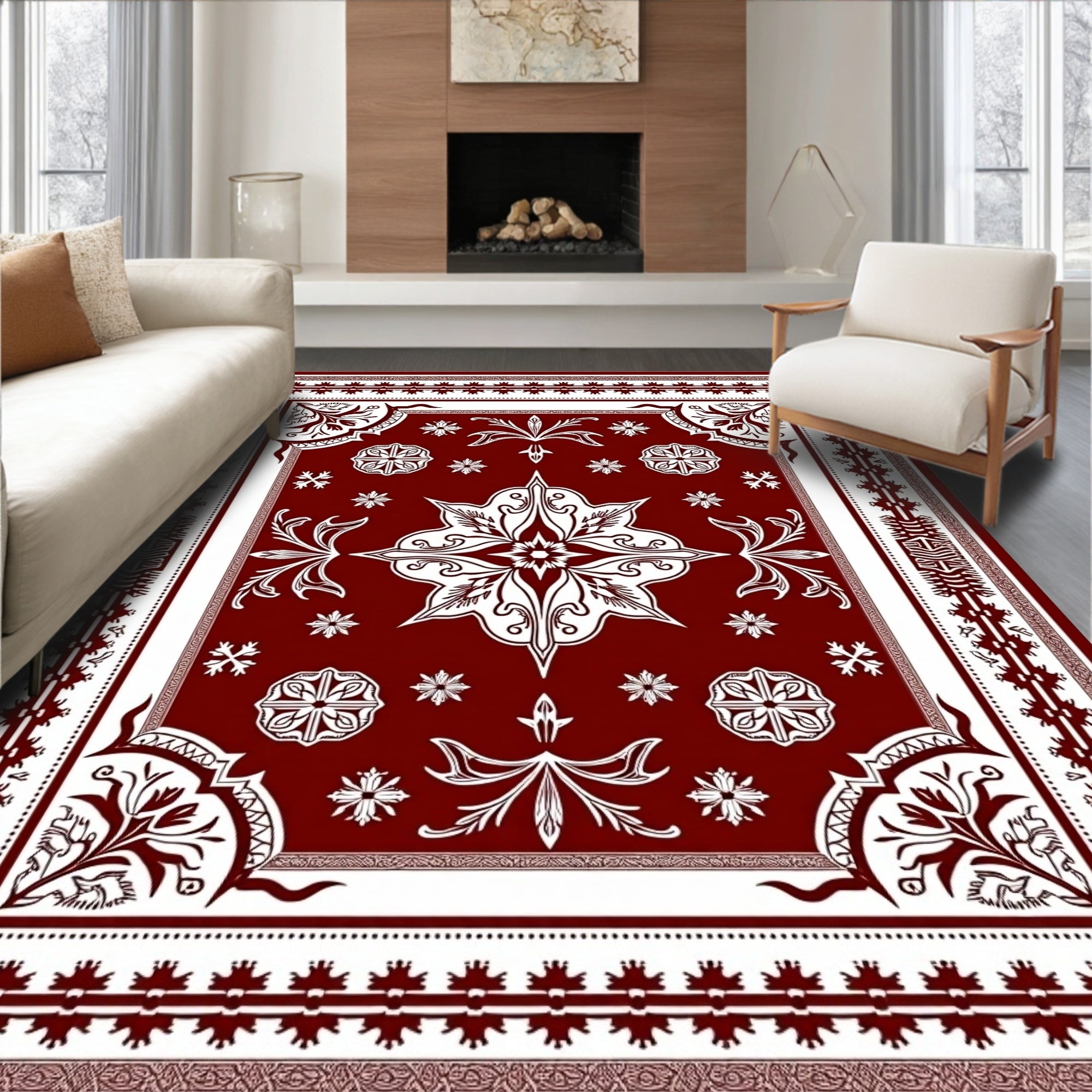 Ultra Soft Area Rug, Non Slip, Stain Resistant, Washable Area Rugs for Living Room, Bedroom, Yuletide Nostalgic Tapestry Artisan Creation(Red) Overview: