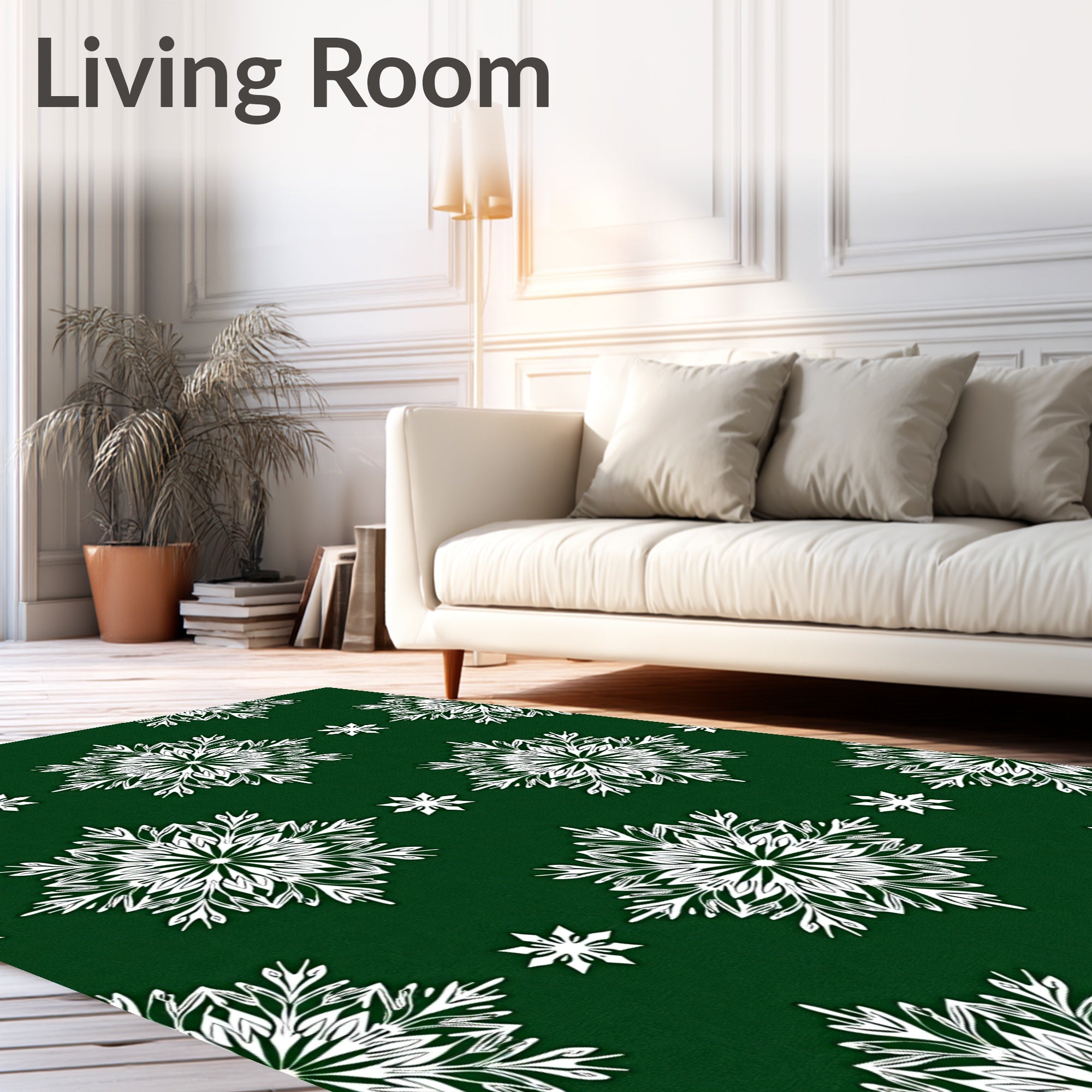 Ultra Soft Area Rug, Non Slip, Stain Resistant, Washable Area Rugs for Living Room, Bedroom, Yuletide Snowflake Wonderland Textured(Green) Overview:
