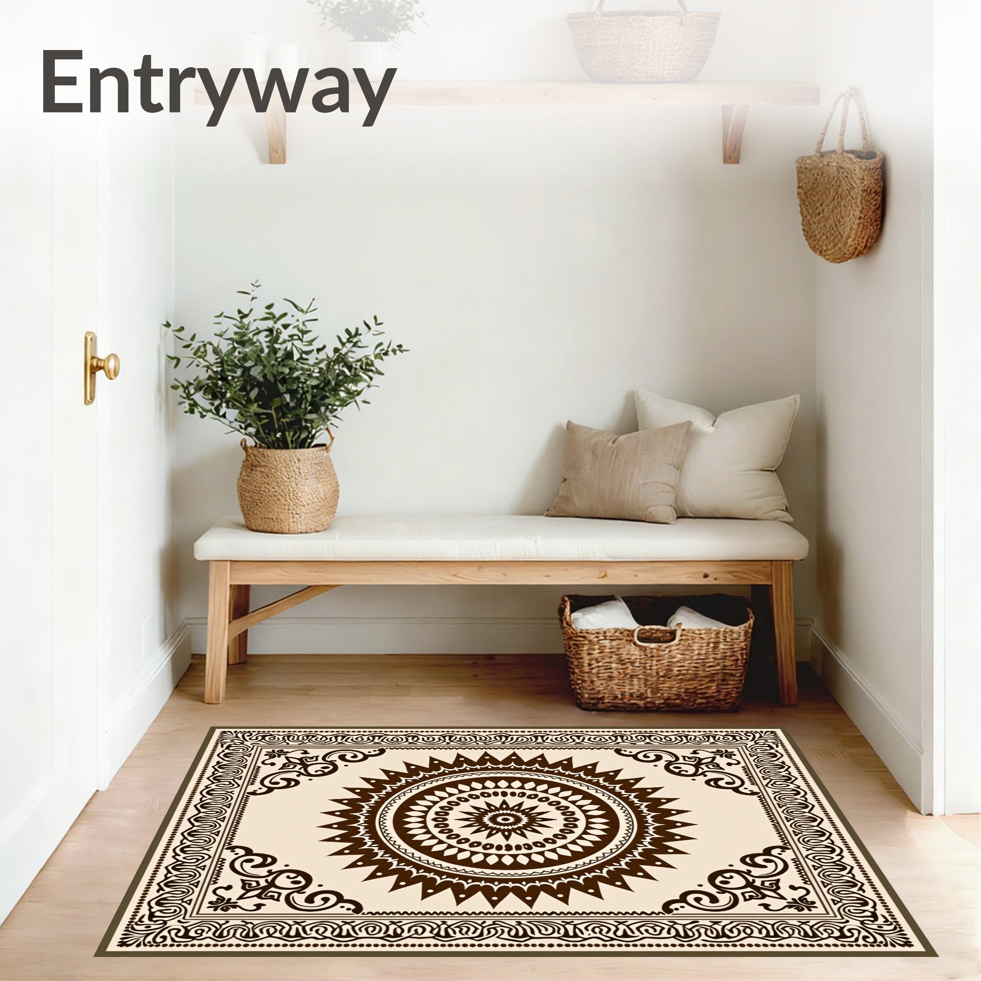 Flatwoven High Traffic Area Rug, Zen Garden Meditation Inspired Interlocking Design, Non Slip, Stain Resistant, Washable Area Rugs for Living Room, Bedroom (Brown) Overview: