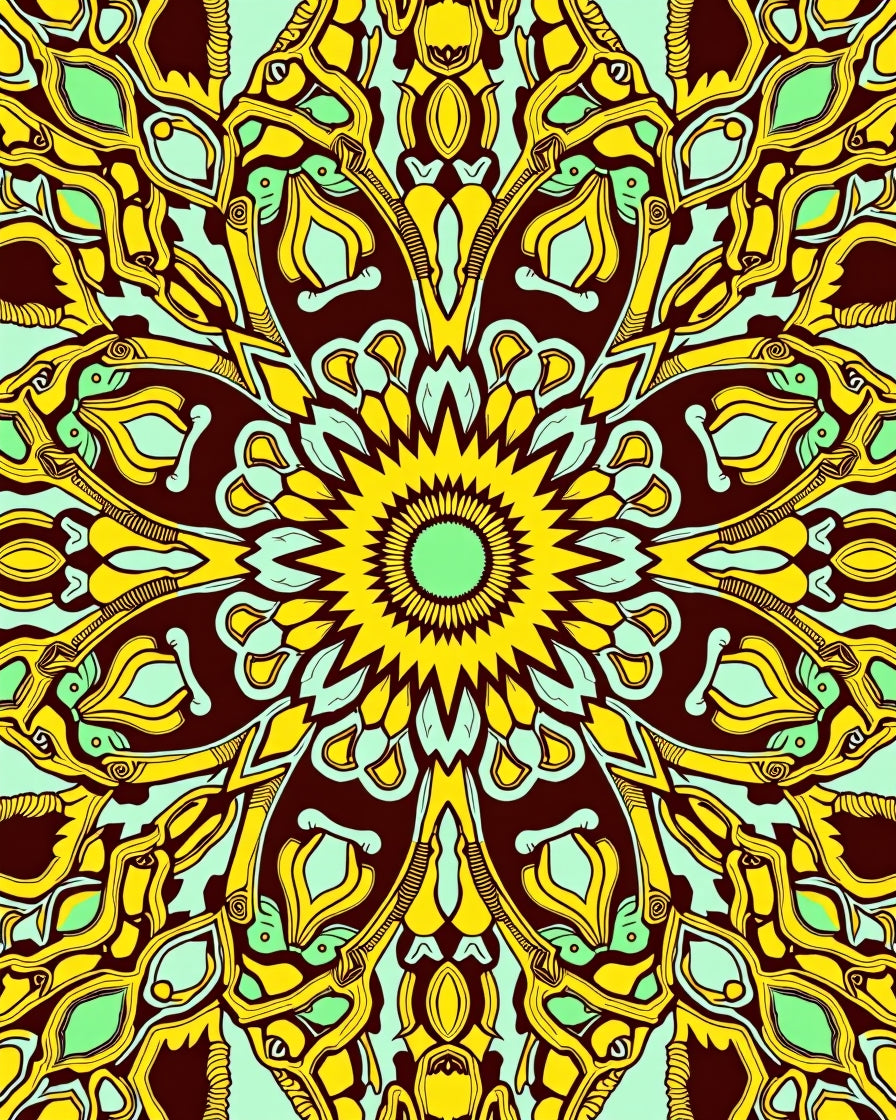 Zesty Symmetrical Floral Motif Traditional Artisan(Yellow)