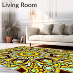 Flatwoven High Traffic Area Rug, Zesty Symmetrical Floral Motif Traditional Artisan, Non Slip, Stain Resistant, Washable Area Rugs for Living Room, Bedroom (Yellow) Overview: