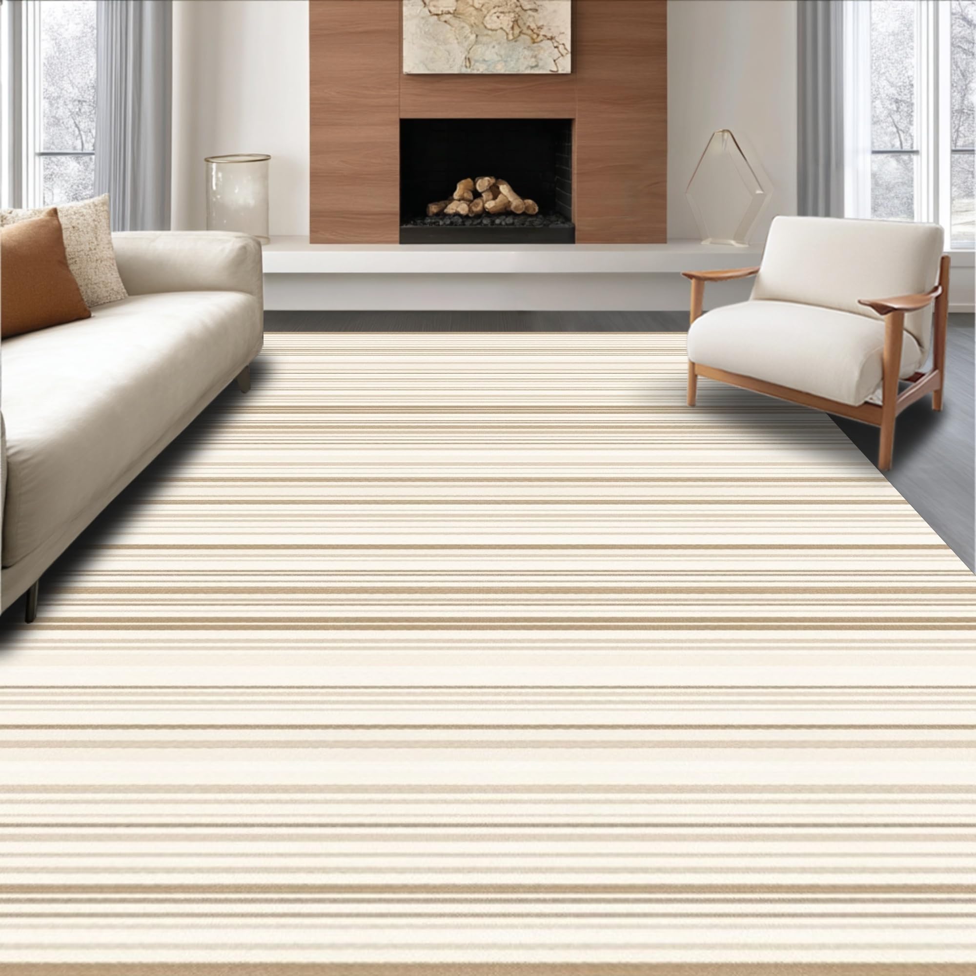 Absorbent Beige Bathroom Linear Stripe Area(Beige)