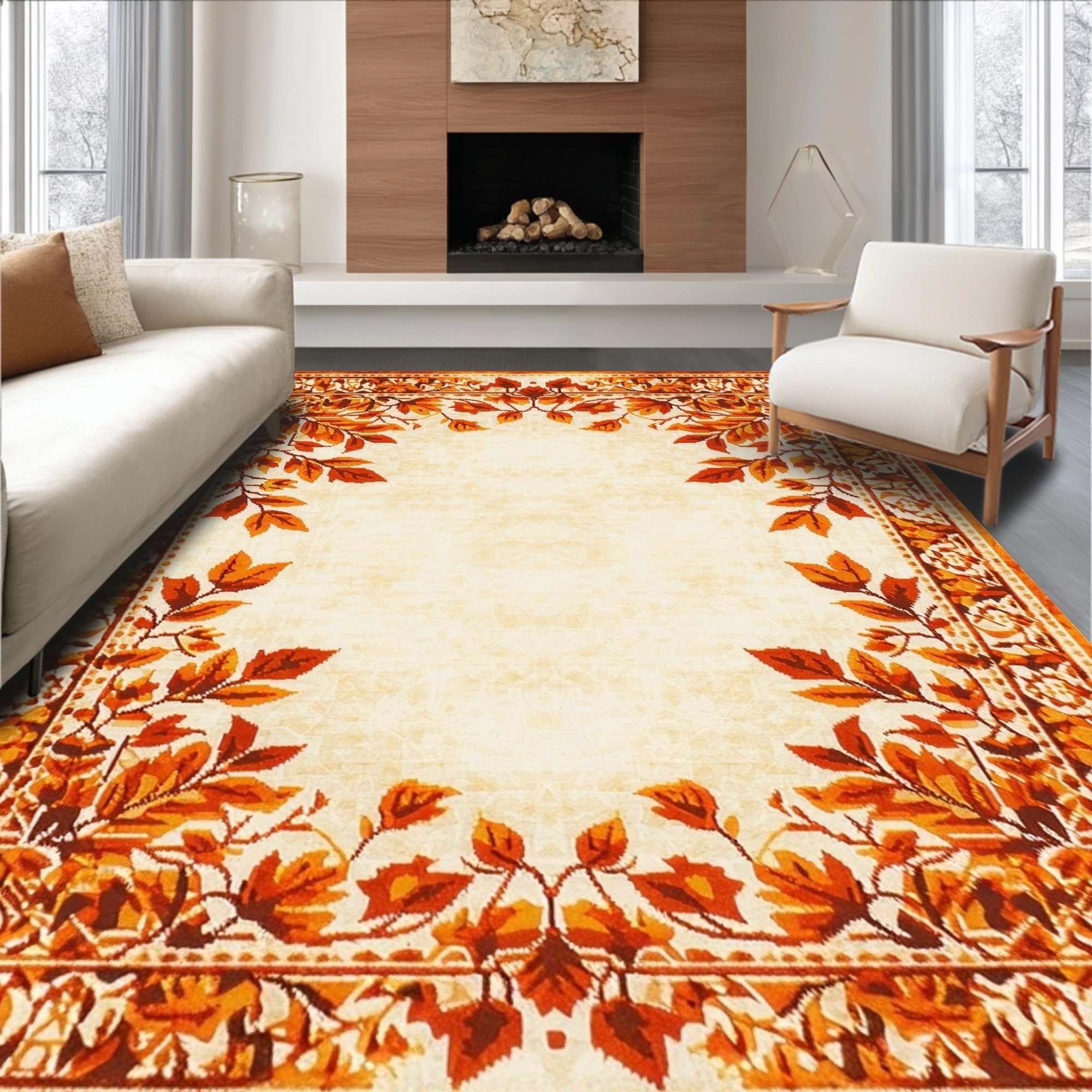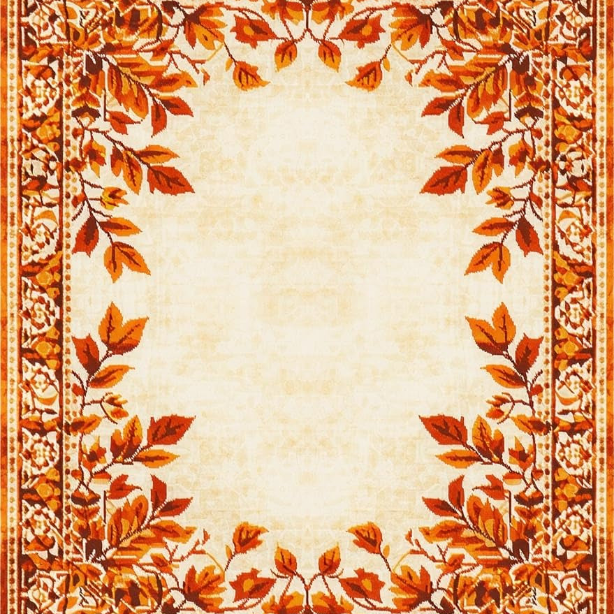 Autumn Harvest Medallion Area with Rustic Burnt Orange Leaf Design(Beige)