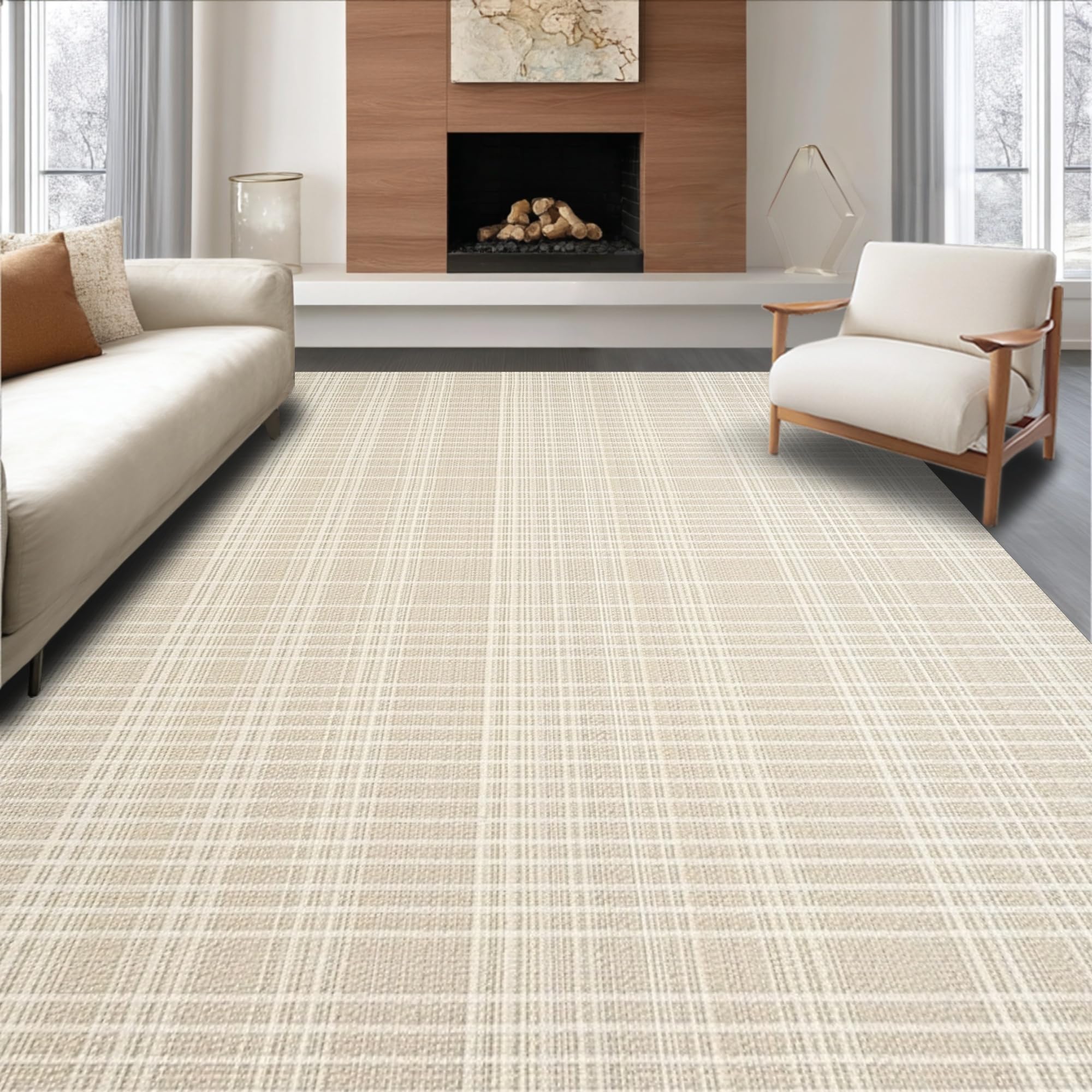 Minimalist Earth Tone Area Elegant Cream Beige Textured(Beige)