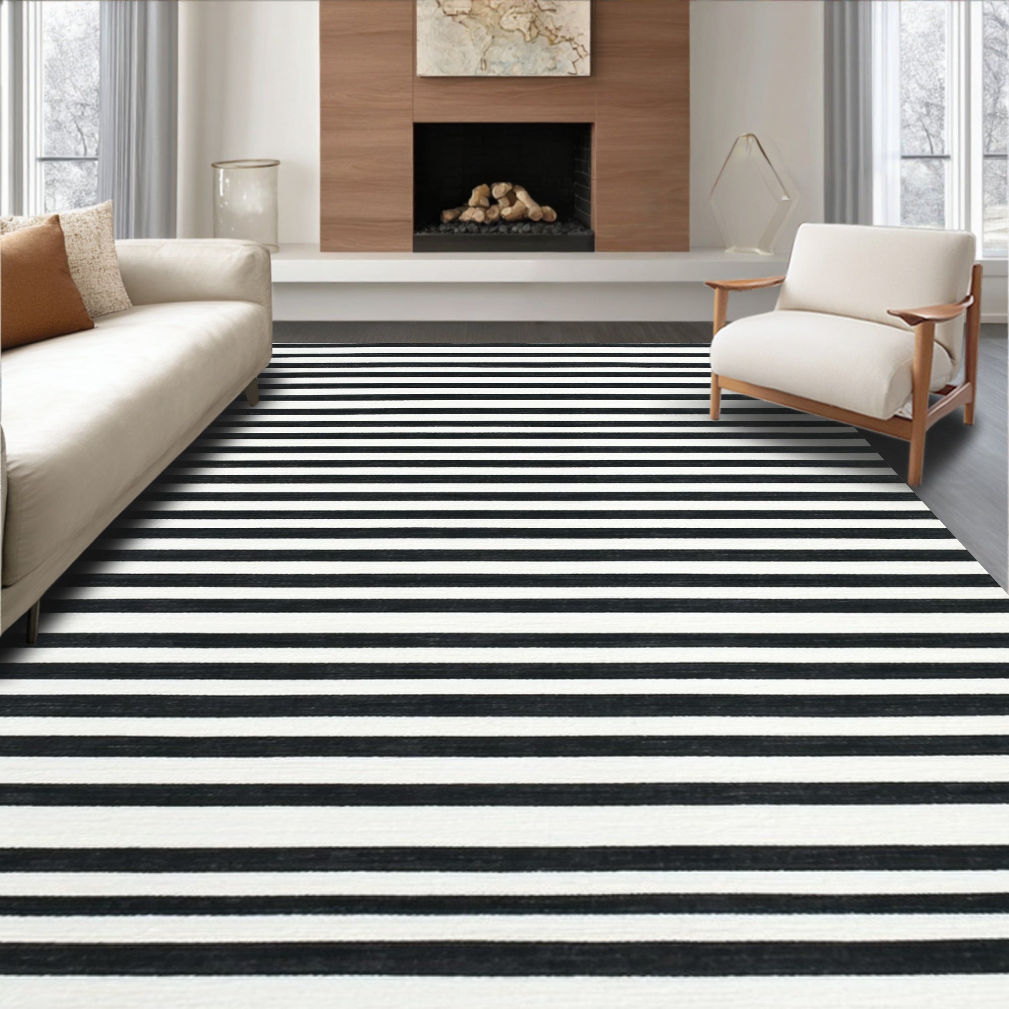 Minimalist Dual Tone Stripe With Handcrafted Layered Lines(Black)
