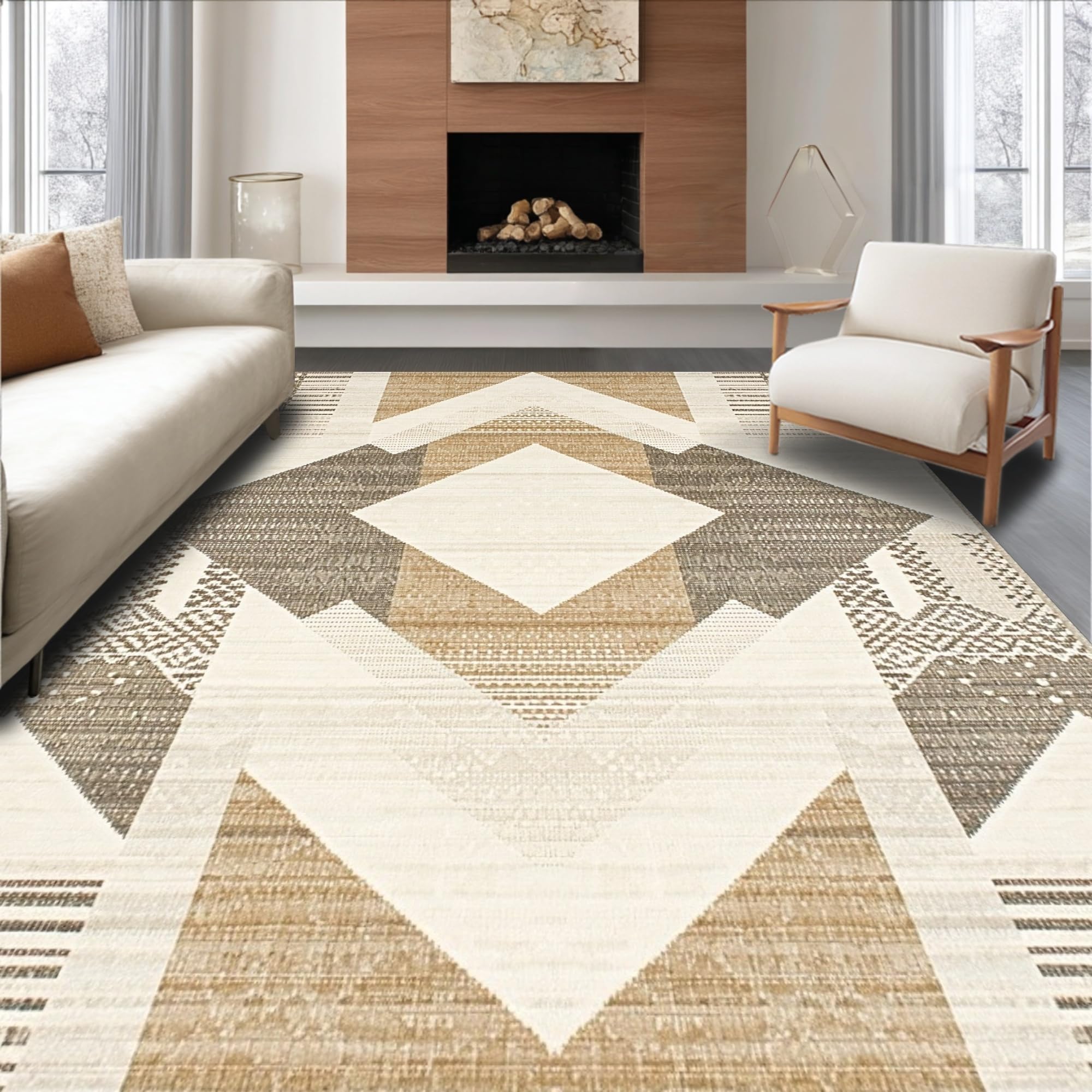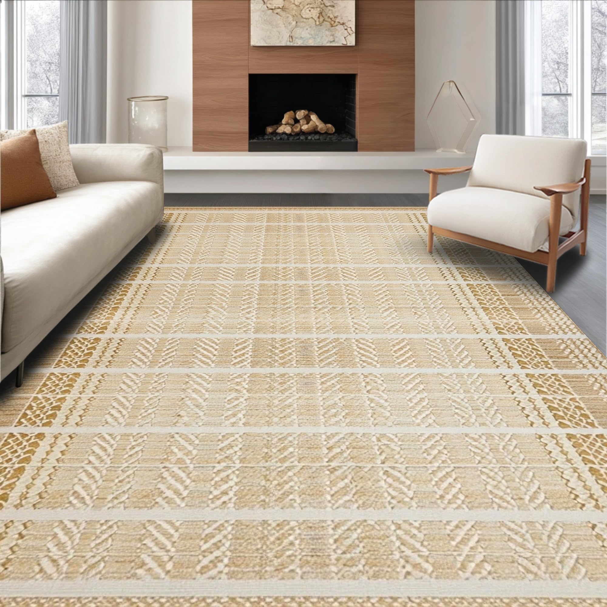 Minimalist Striped Beige Grey Runner Modern Area(Beige)