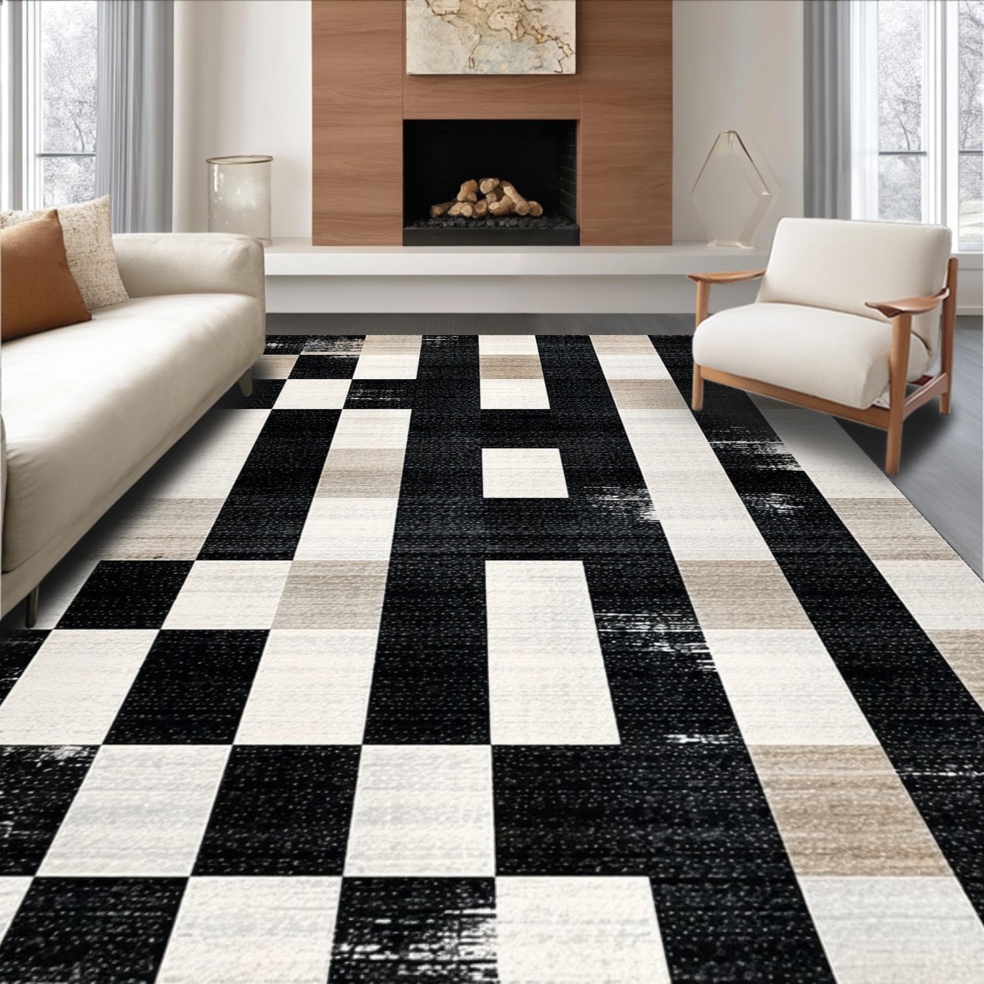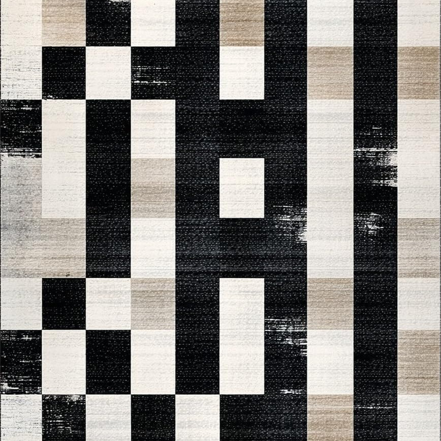 Minimalist Two Tone Horizontal Banded Lightweight Doorway Floor Accent(Black)