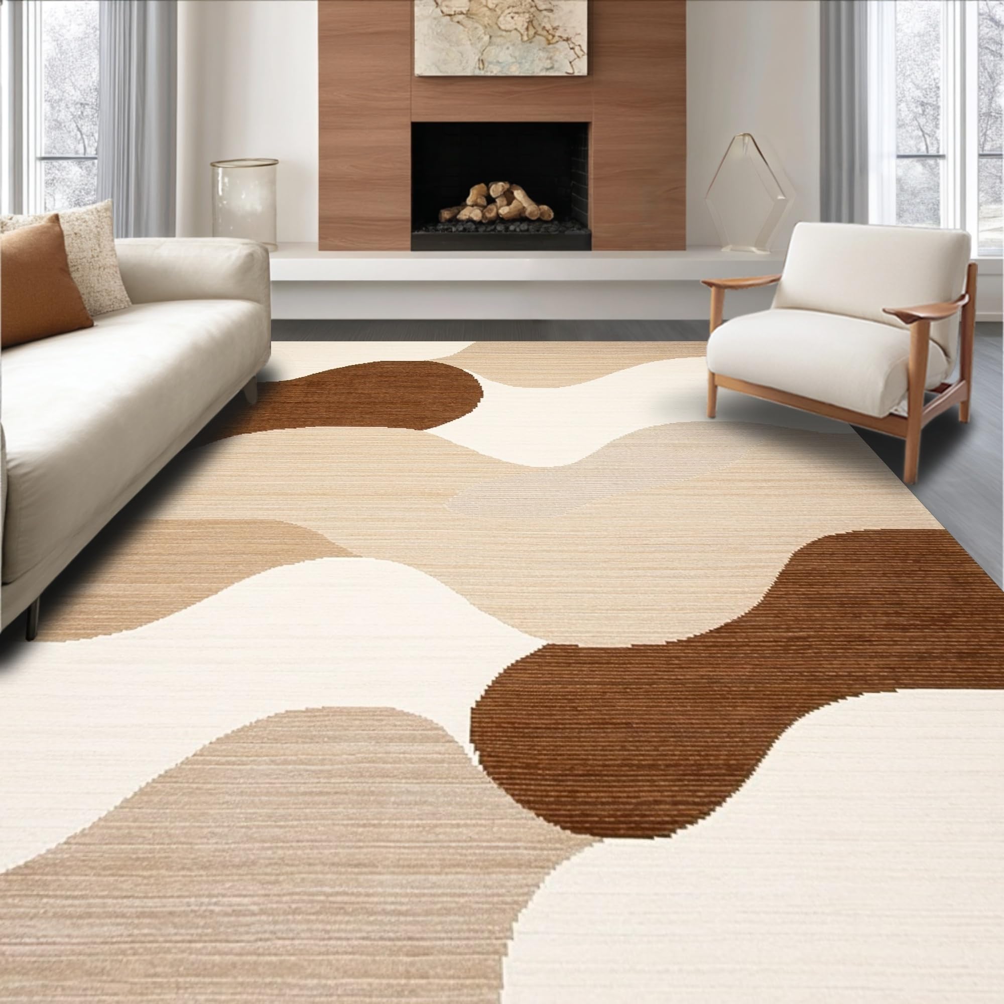 Minimalist Washable Rug with Sophisticated Brown Grey Marble Design(Gold)