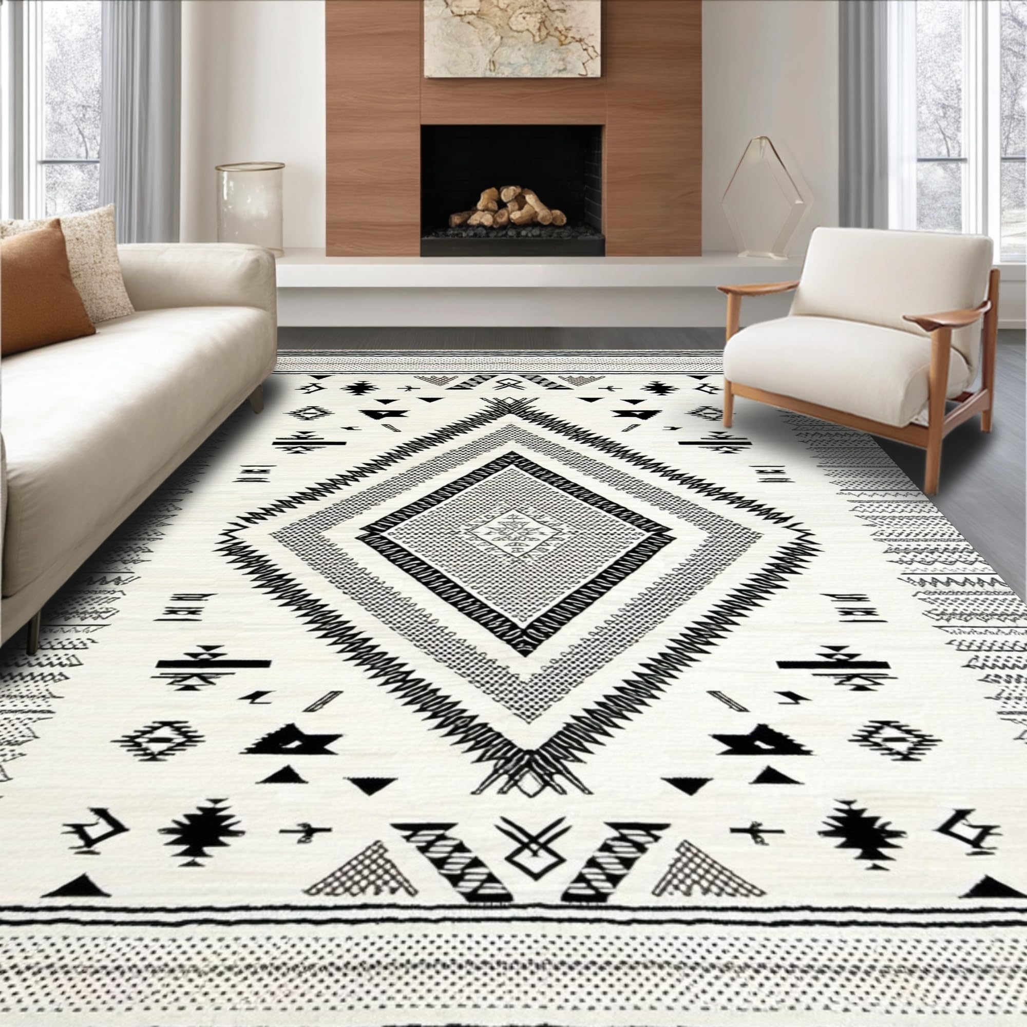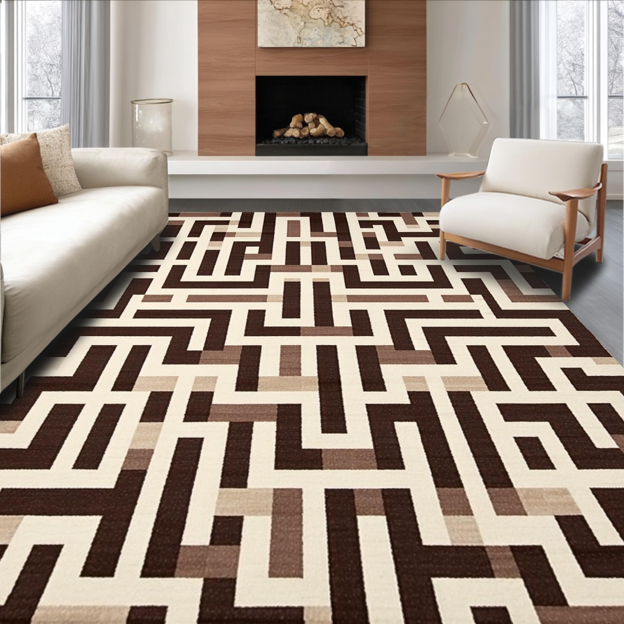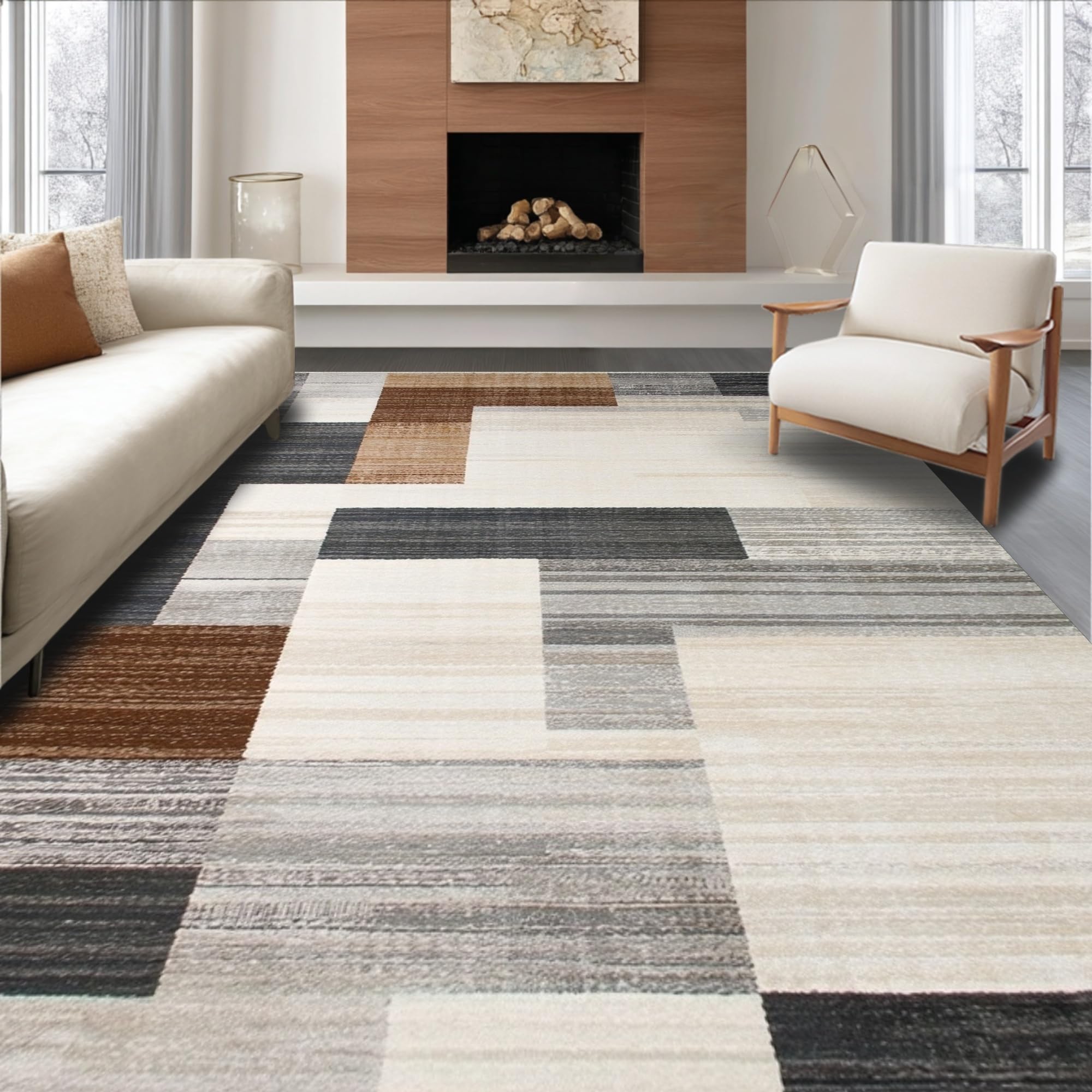 Modern Abstract Lines Area with Interlocking Geometric Shapes Design(Beige)