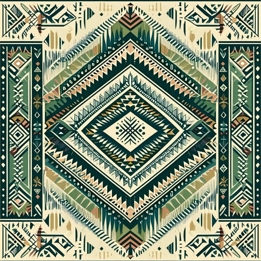Modern Abstract Machine Area Beige Dark Green(Green)