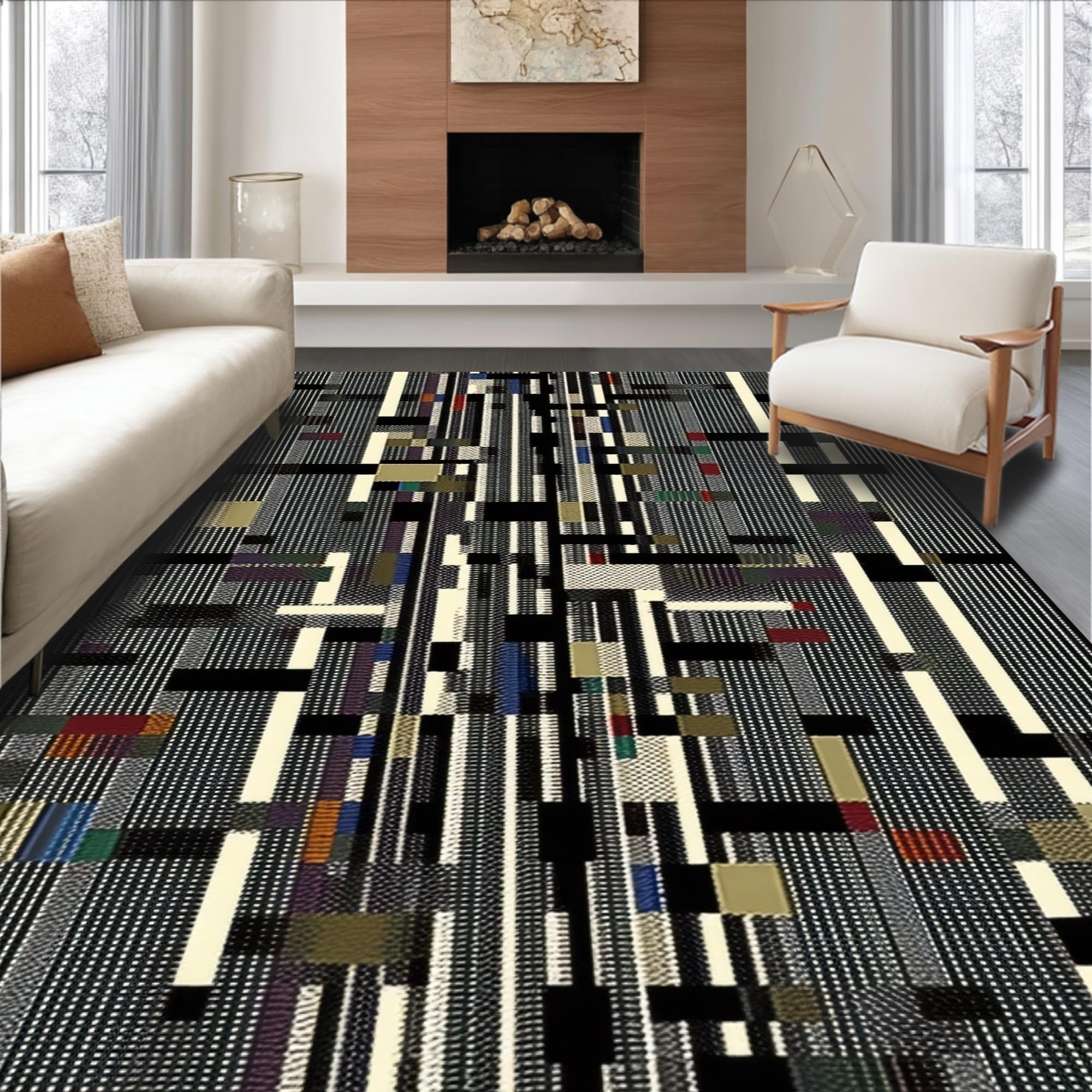 Modern Abstract Linear Weave Featuring Black and White Intersecting Stripes(Gray)