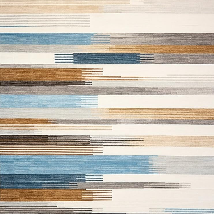 Modern Abstract Striped with Cream Brown Blue and Gray Bands(Beige)
