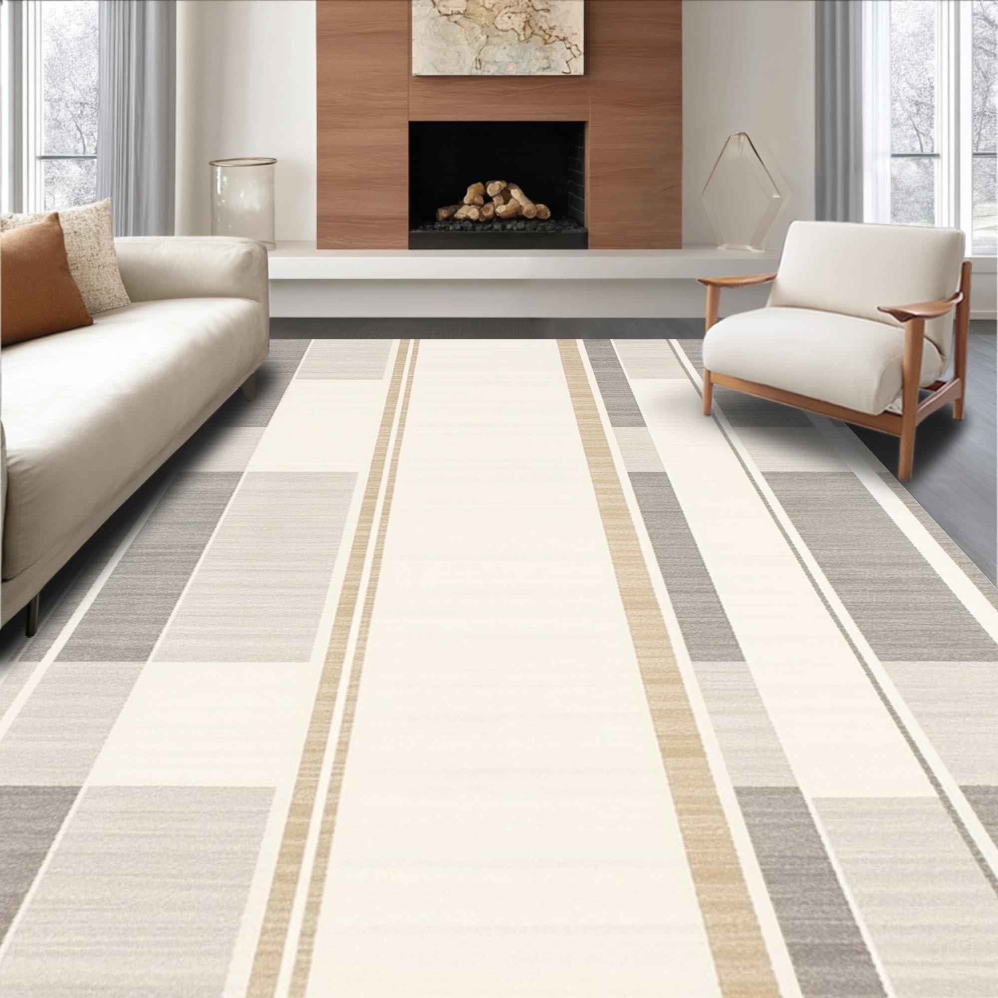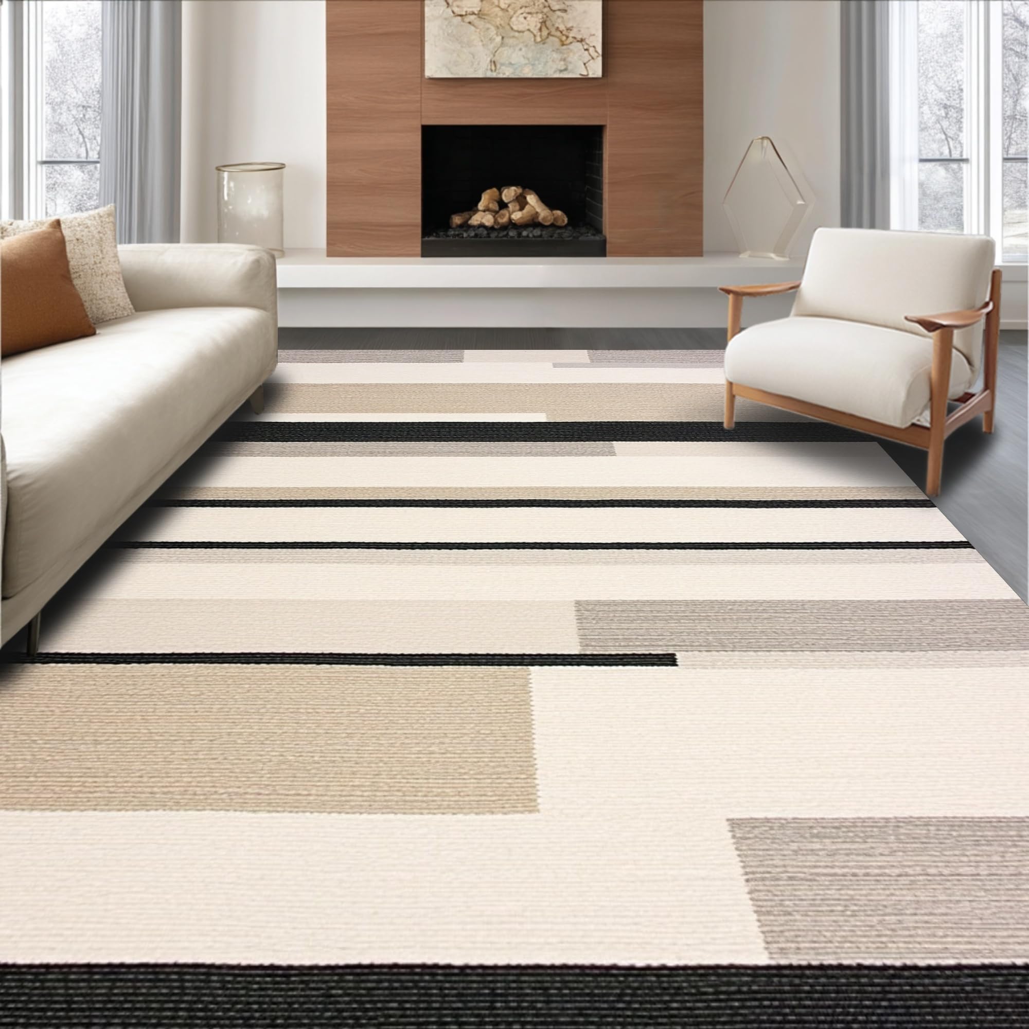 Modern Abstract Striped Area with Bold Beige and Black Blocks(Beige)