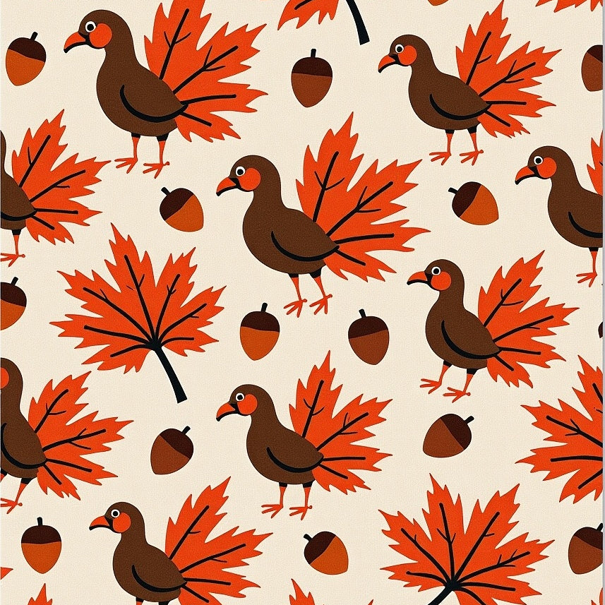 Harvest Feast Birds Motif with Maple Leaves and Acorns(Beige)
