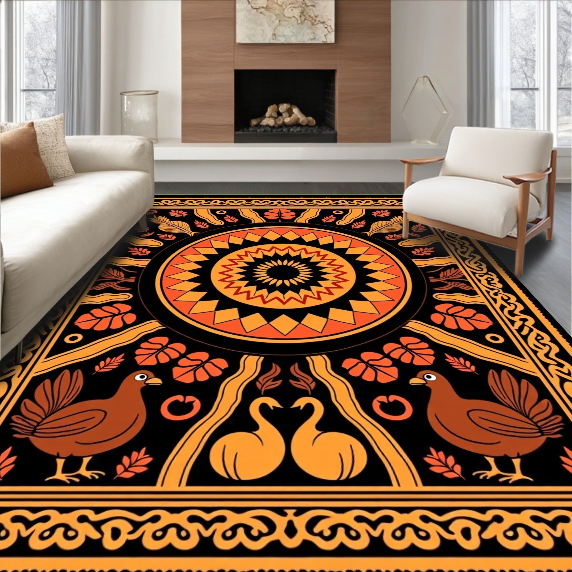 Harvest Checkerboard Decorative Floor with Autumn Motifs(Orange)