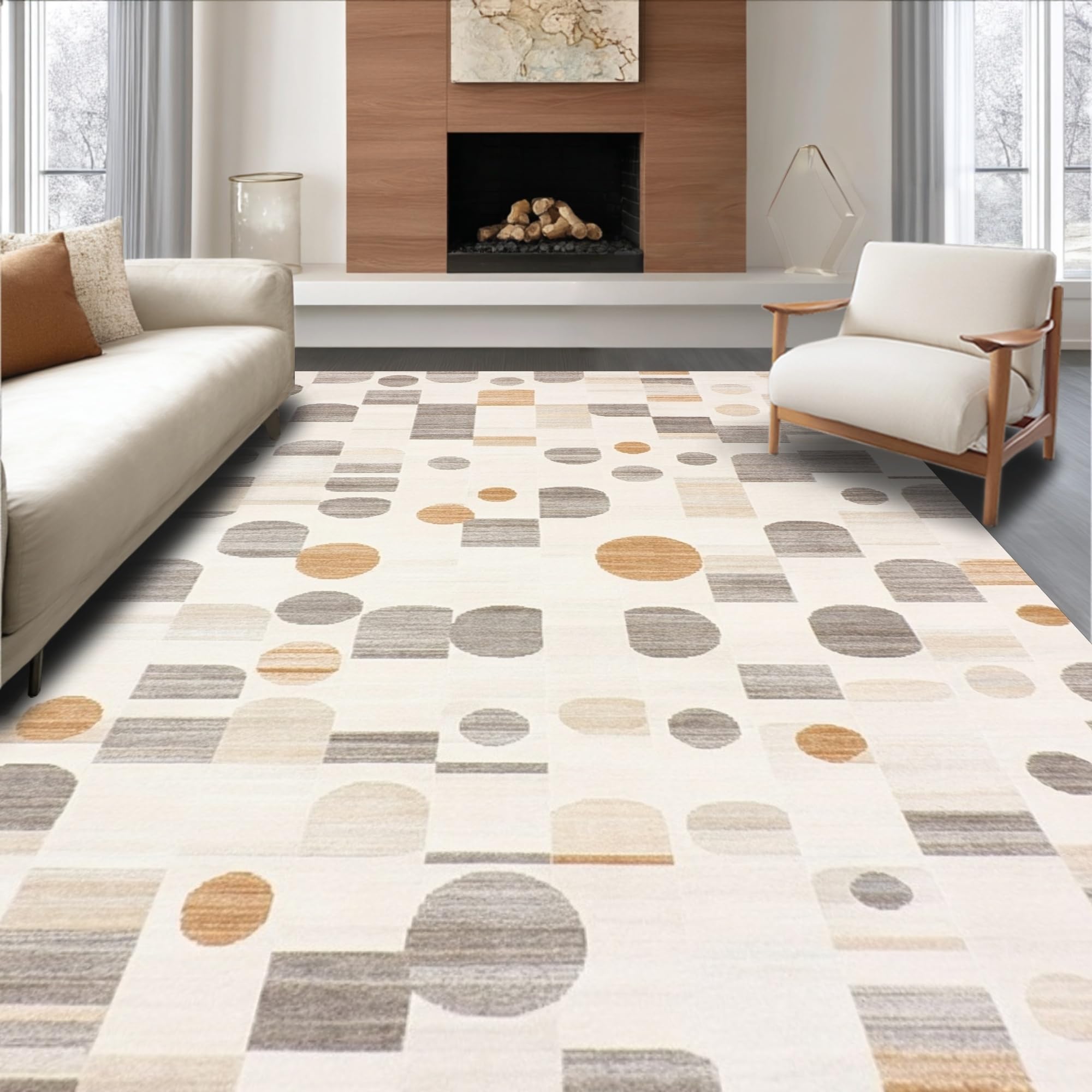 Modern Abstract with Intersecting Circular Forms and Fluid Shapes(Beige)