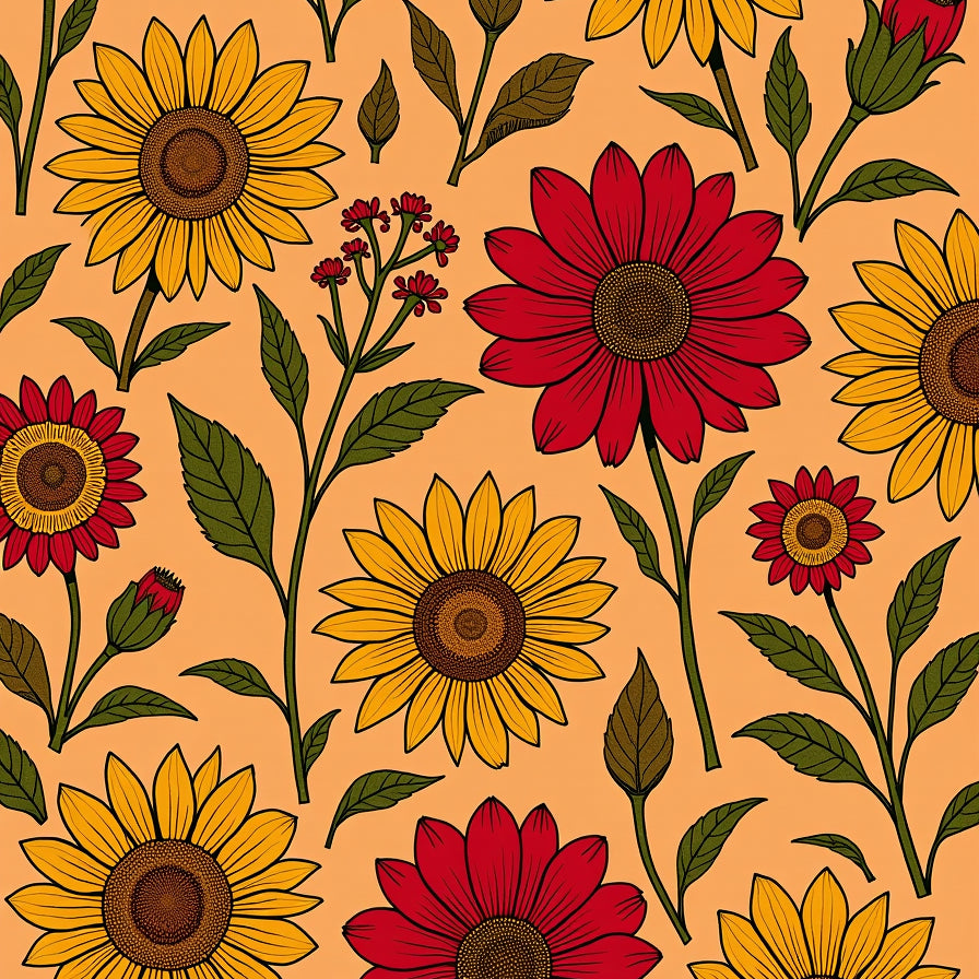 Harvest Season Poppy Meadow Floral with Autumn Blooms(Orange)