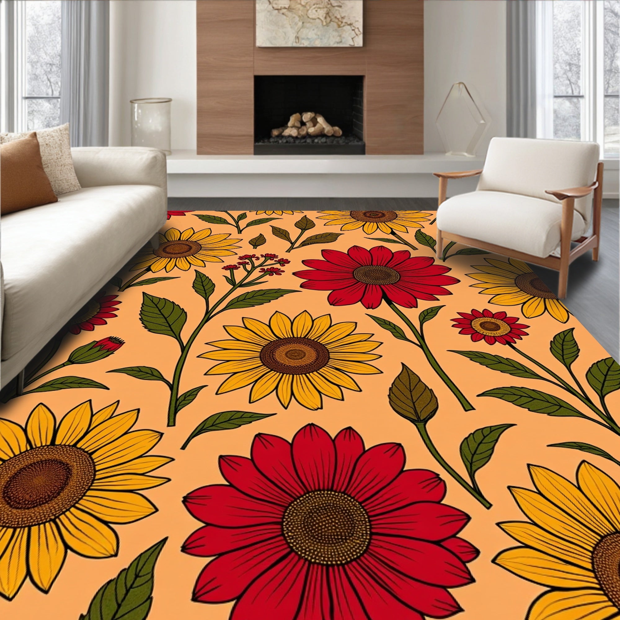 Harvest Season Poppy Blossom Design Anti Slip Doormat Area(Red)