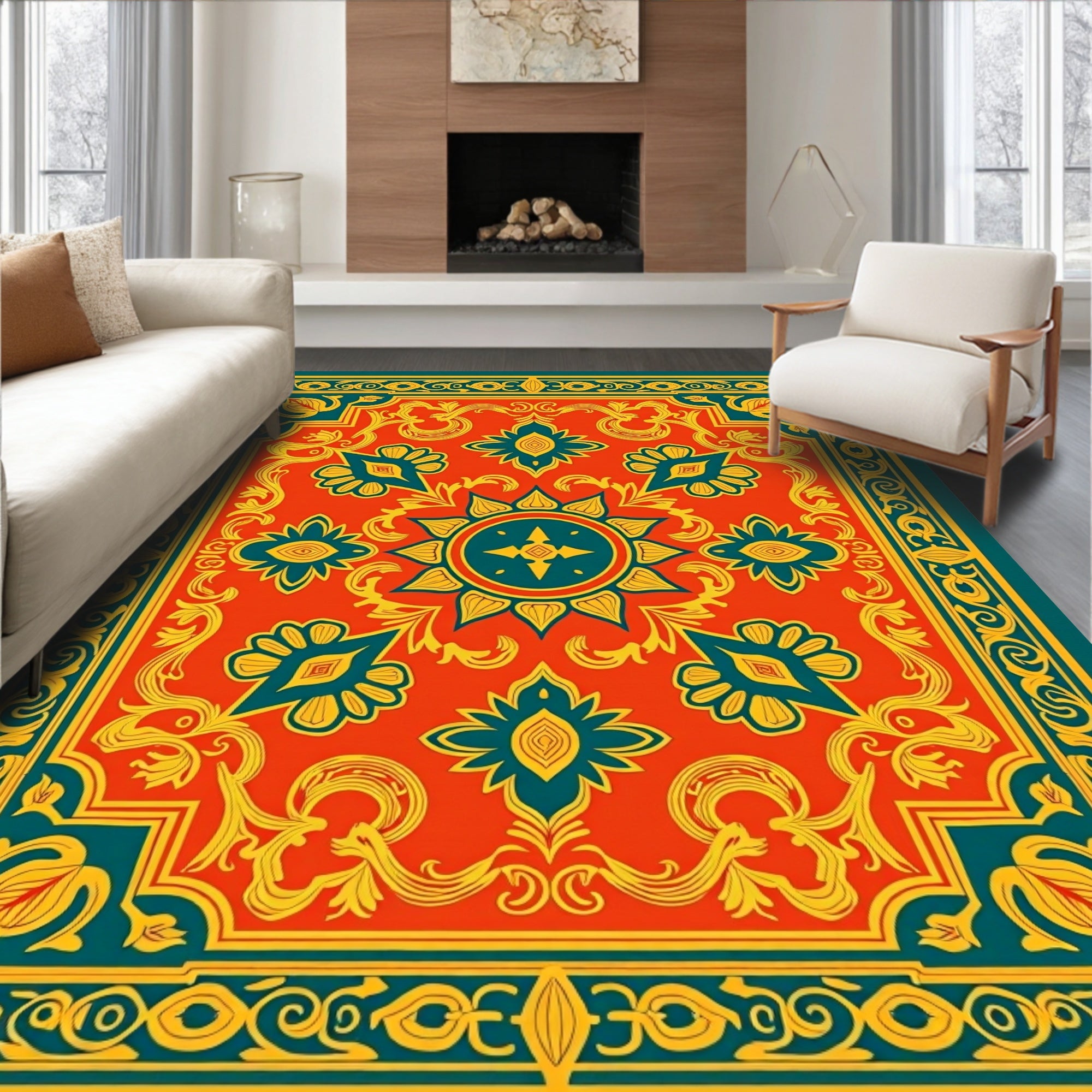 Harvest Sunset Medallion Decorative Floor Covering(Red)