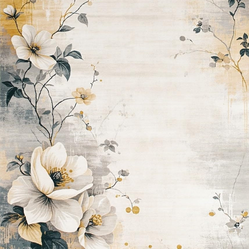 Modern Beige Area Abstract Floral Design(Beige)