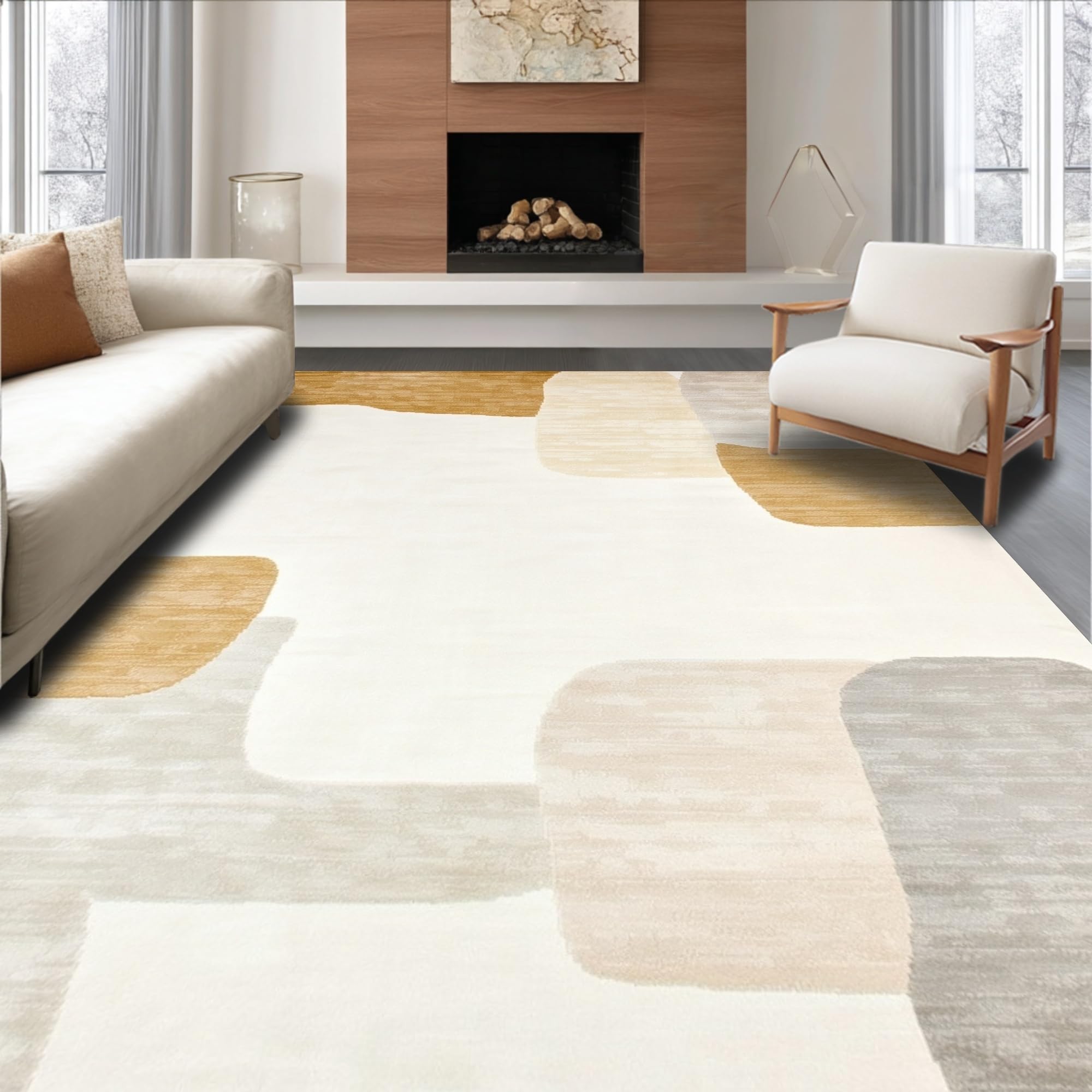 Modern Beige Light Luxury Geometric Indoor Area(Beige)