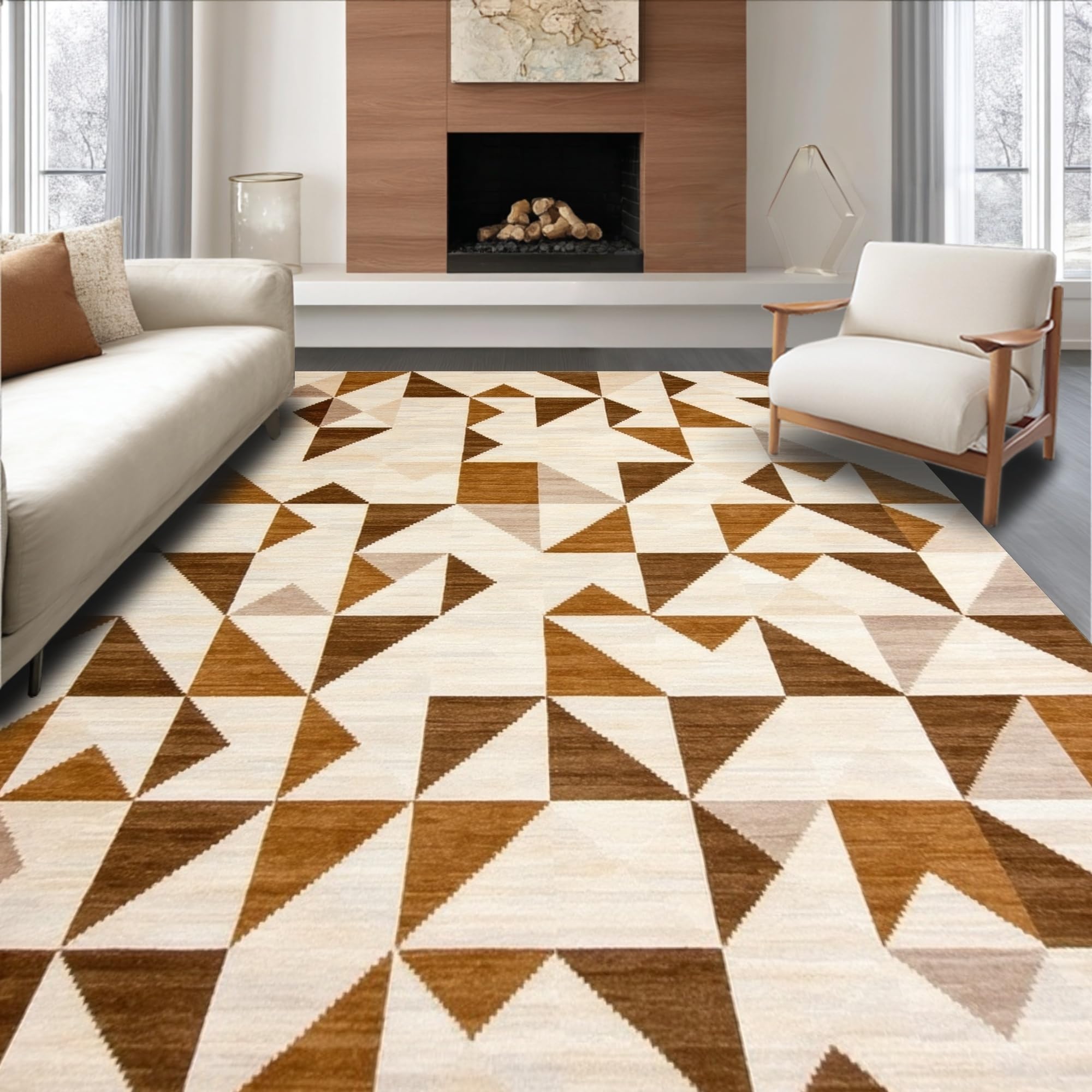 Modern Beige Woven Geometric Area(Beige)