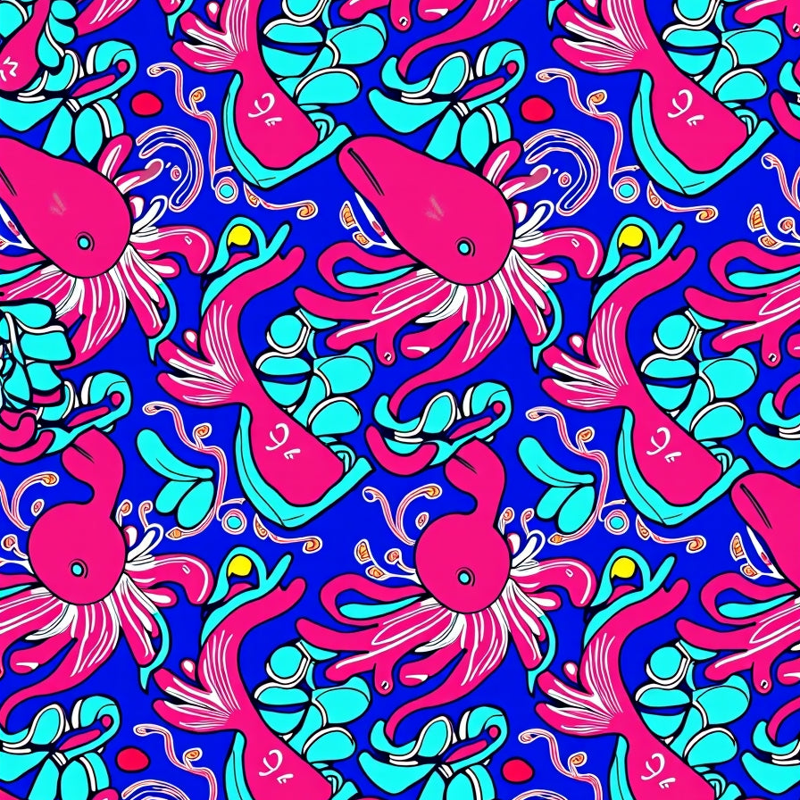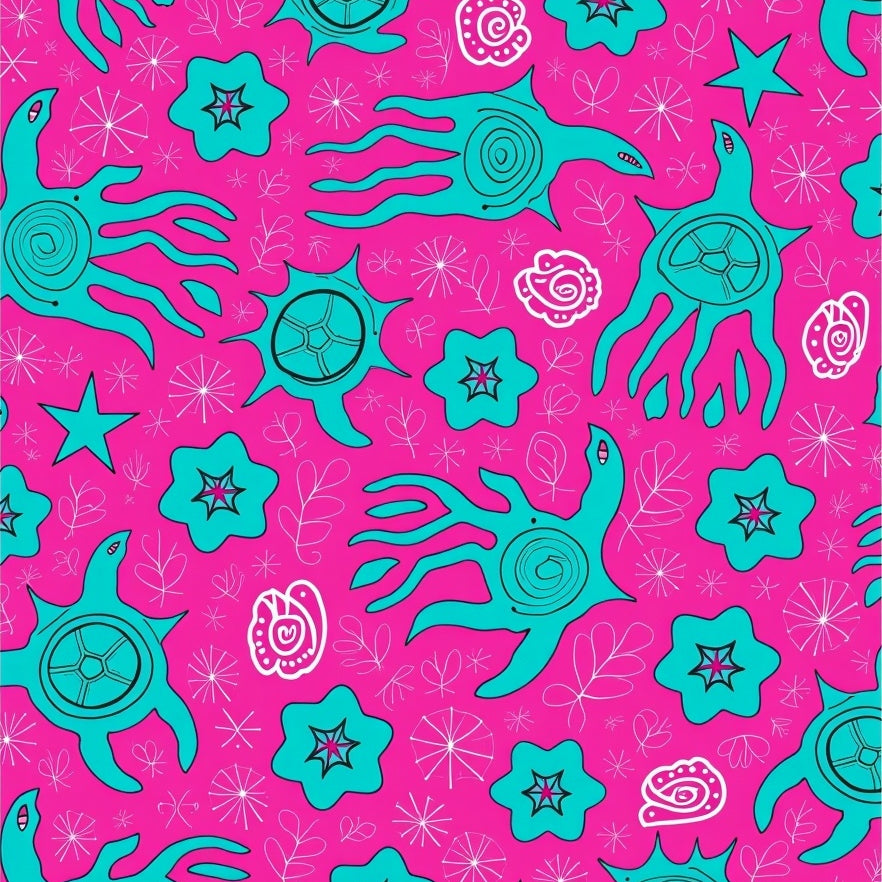 Hawaiian Reef Life Mythical Creatures Mosaic Design(Pink)