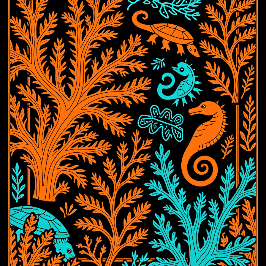 Hawaiian Reef Fantasy Sealife and Coral Art Nouveau(Orange)